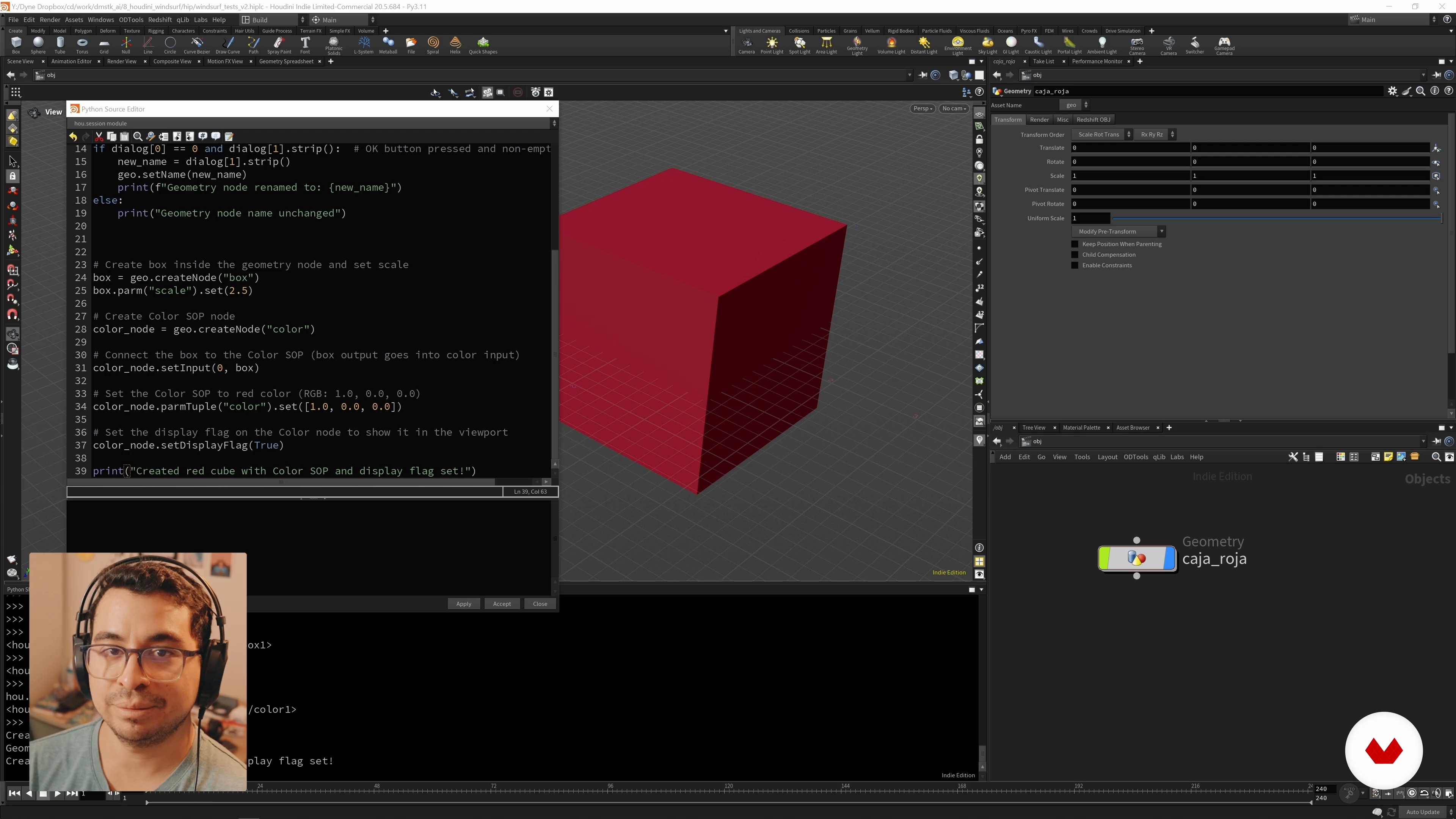 “Hallo. in deze video starten we met het onderzoeken van de integratie tussen Windsurf en Houdini. Je ziet mij nu aan het werk in mijn projectmap binnen Windsurf. Daar ga ik nu direct een nieuw Python-script aanmaken We gaan rechts klikken en. We gaan het noemen... cuborrojo.Py Y we gaan de code die we in de vorige video hebben gemaakt opnieuw ophalen. we gaan het plakken. Nu. Wat we gaan doen We gaan doen... een iets complexer script. verdeeld in twee delen. Eerst proberen we de naam te wijzigen die zal worden gebruikt. Vervolgens gaan we verder met de rest van de code. De node van de node ...”