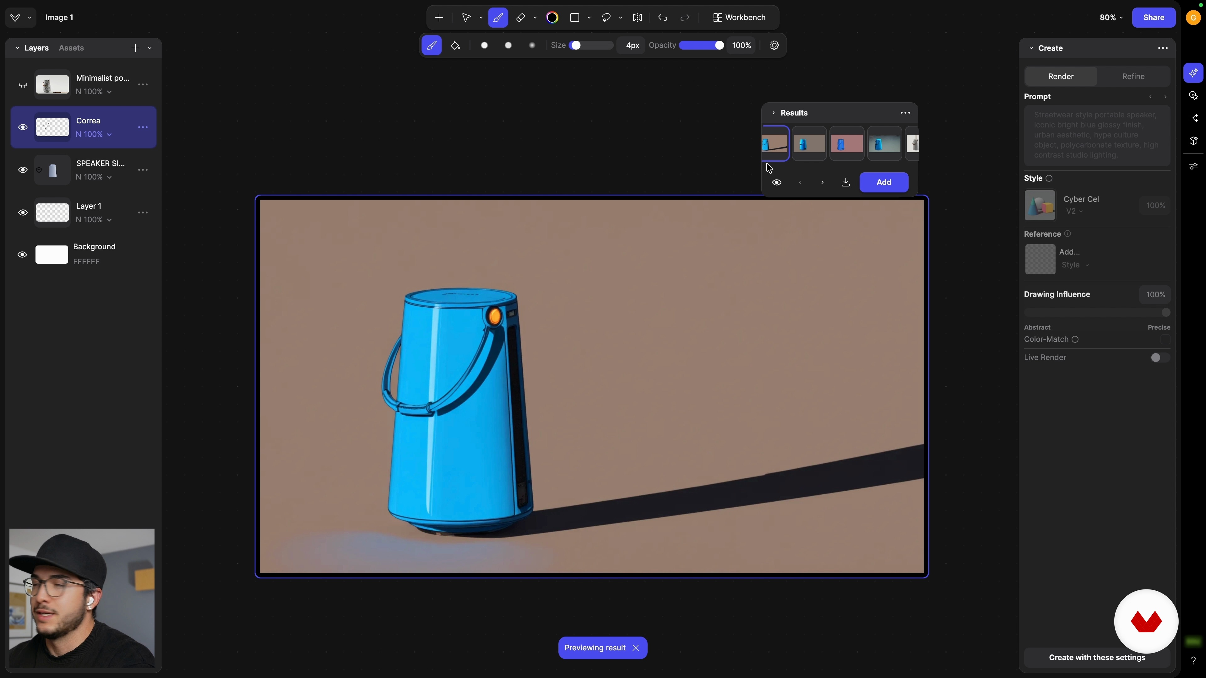 “Je zult je 3D‑luidsprekermodel als precieze basis gebruiken en daarboven organische details zoals riemen en knoppen direct in Vizcom schetsen. Je zult de penseelstabilisatie afstellen, lagen organiseren en prompts combineren met stijl‑presets om snelle exploraties te genereren. Tot slot zul je Live Render activeren om in real time te zien hoe je 2D‑lijnen de 3D‑vorm beïnvloeden, en deze lage‑resolutiepreview gebruiken om te beslissen welke ideeën je later verder zult uitwerken.”