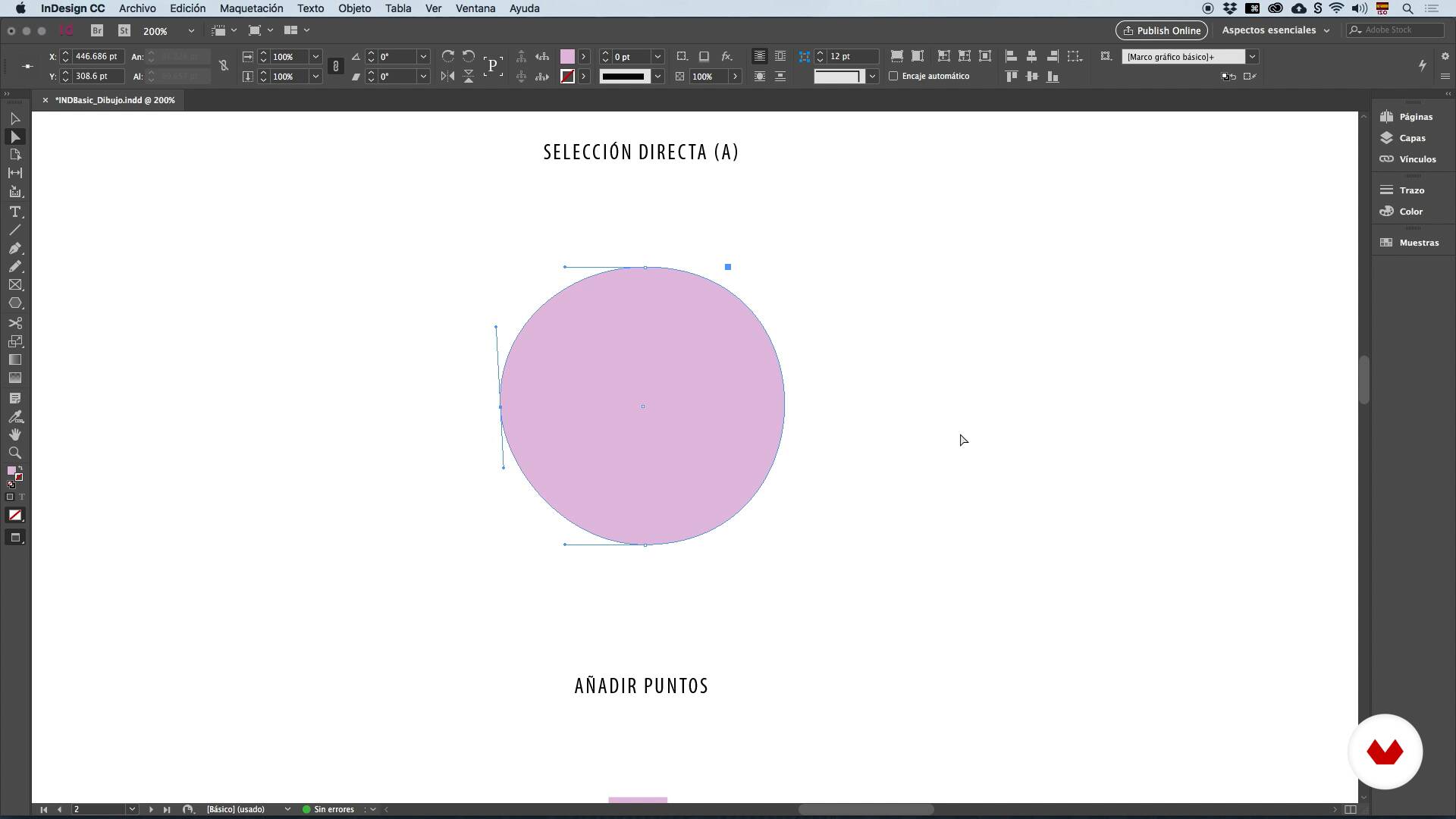 “In deze les leer ik je de InDesign tekengereedschappen. Hoewel InDesign geen programma is dat is ontworpen om te tekenen zoals Illustrator, heeft veel vergelijkbare tools die zullen vergemakkelijken: om rechthoeken, ellipsen, polygonen te maken. en ik zal je ook andere tools laten zien die voor tekenen uit de vrije hand zijn, zoals Pen, of zelfs om alleen maar lijnen te maken. We zullen zien waar het over gaat. Ik moet u eerst waarschuwen dat InDesign geen tekenprogramma is, het is geen Illustrator. Sommige collega's beoordelen de achilleshiel het gebruik en tekenen van vectoren in InDesign...”