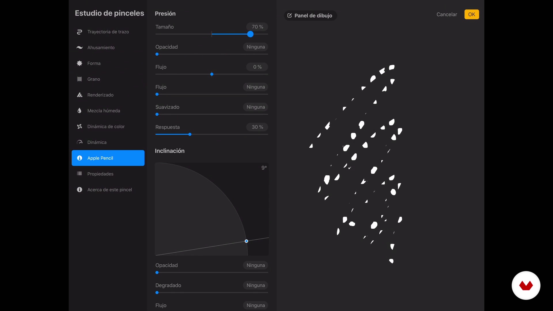 “PROCREATE CURSUS 7 LES 7 Oefening: Een verzameling stippelpenselen maken We zullen een van de saaiste dingen in illustratie oplossen, maak een puntluik met de borstels. Laten we eens kijken hoe we het kunnen oplossen. We beginnen met het maken van een nieuw canvas met onze penseelsjabloon. Op dit canvas teken ik het eerste punt voor de penseelvorm. Om genade te geven aan het meanderen, zal ik geen eenvoudig punt gebruiken maar ik zal het een interessantere manier geven. Ik gebruik Alles kopiëren om deze vorm in een nieuw penseel te importeren. In de Penseelbibliotheek zal ik de nieuwe categ...”