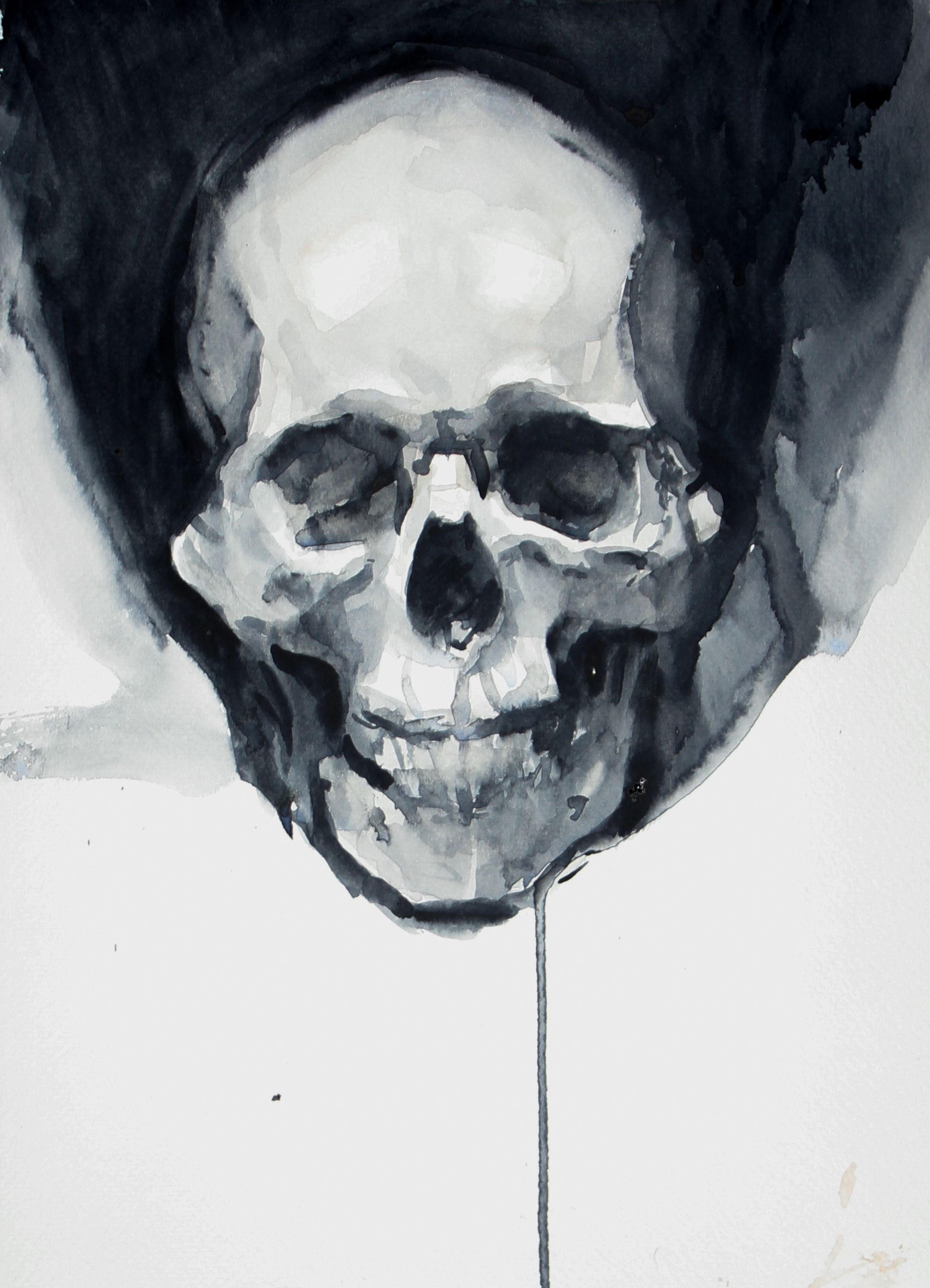 Ik schilder schedels in monochrome tinten, omdat ik me dan kan concentreren op licht en schaduw. Ook is het belangrijk om toonwaarden te gebruiken om de verschillende vlakken van het hoofd te kunnen identificeren.