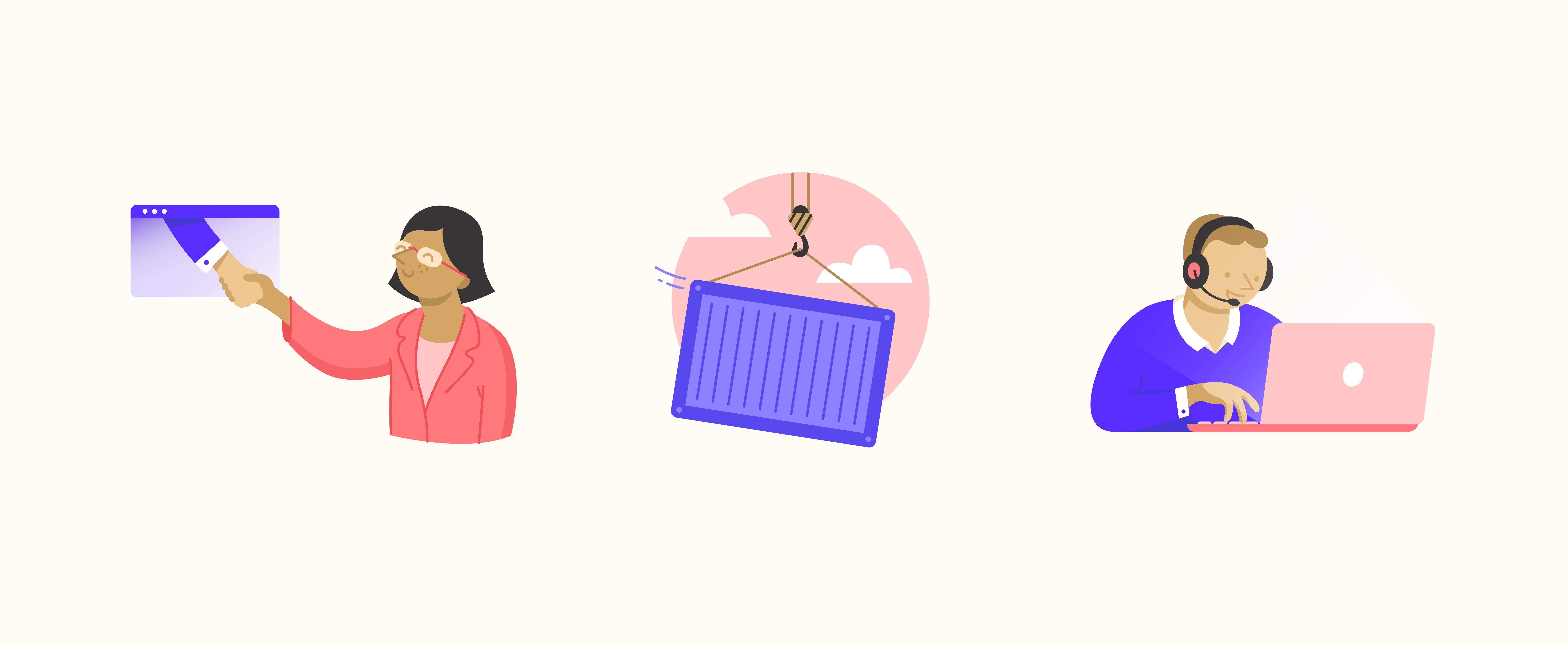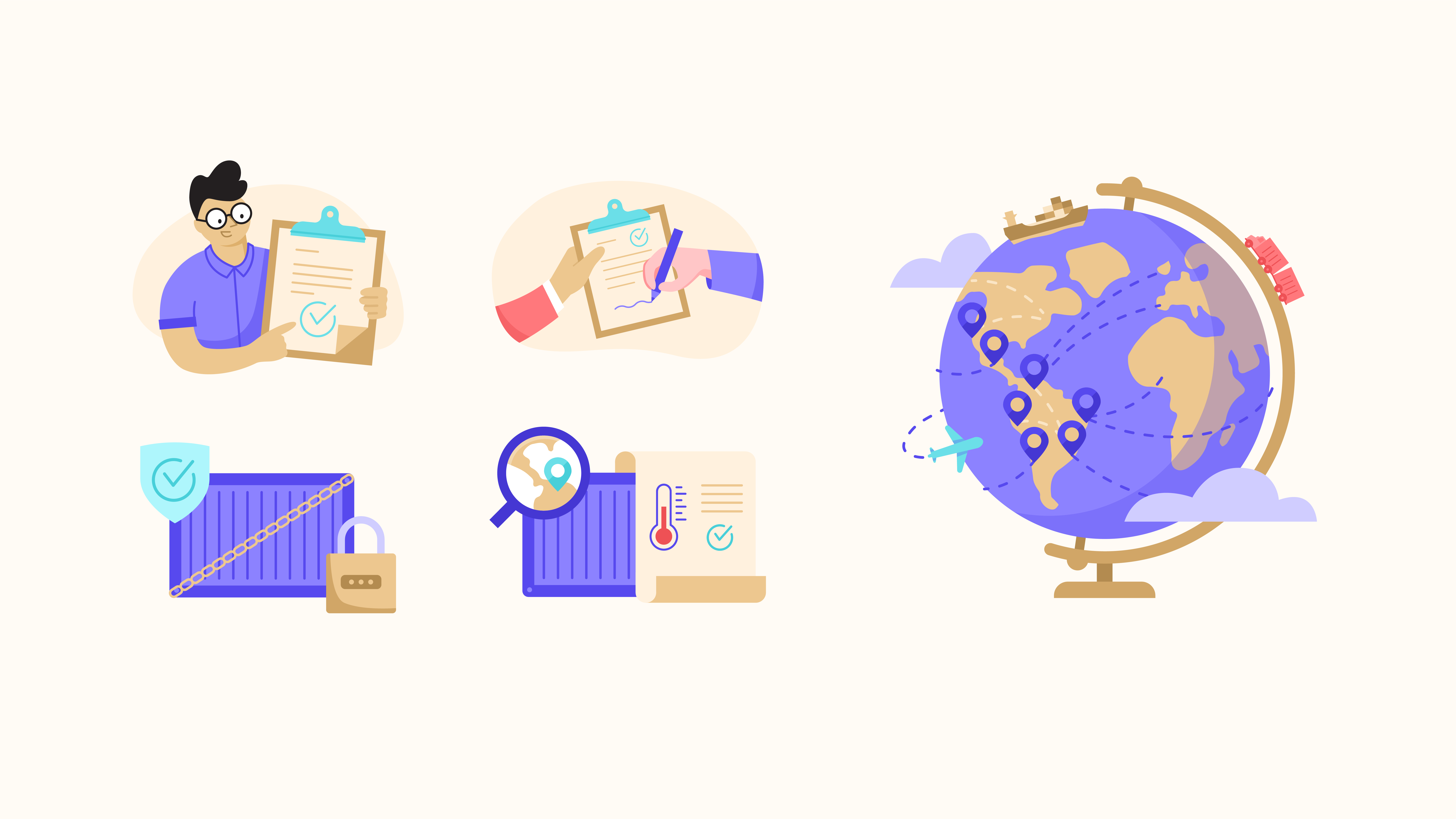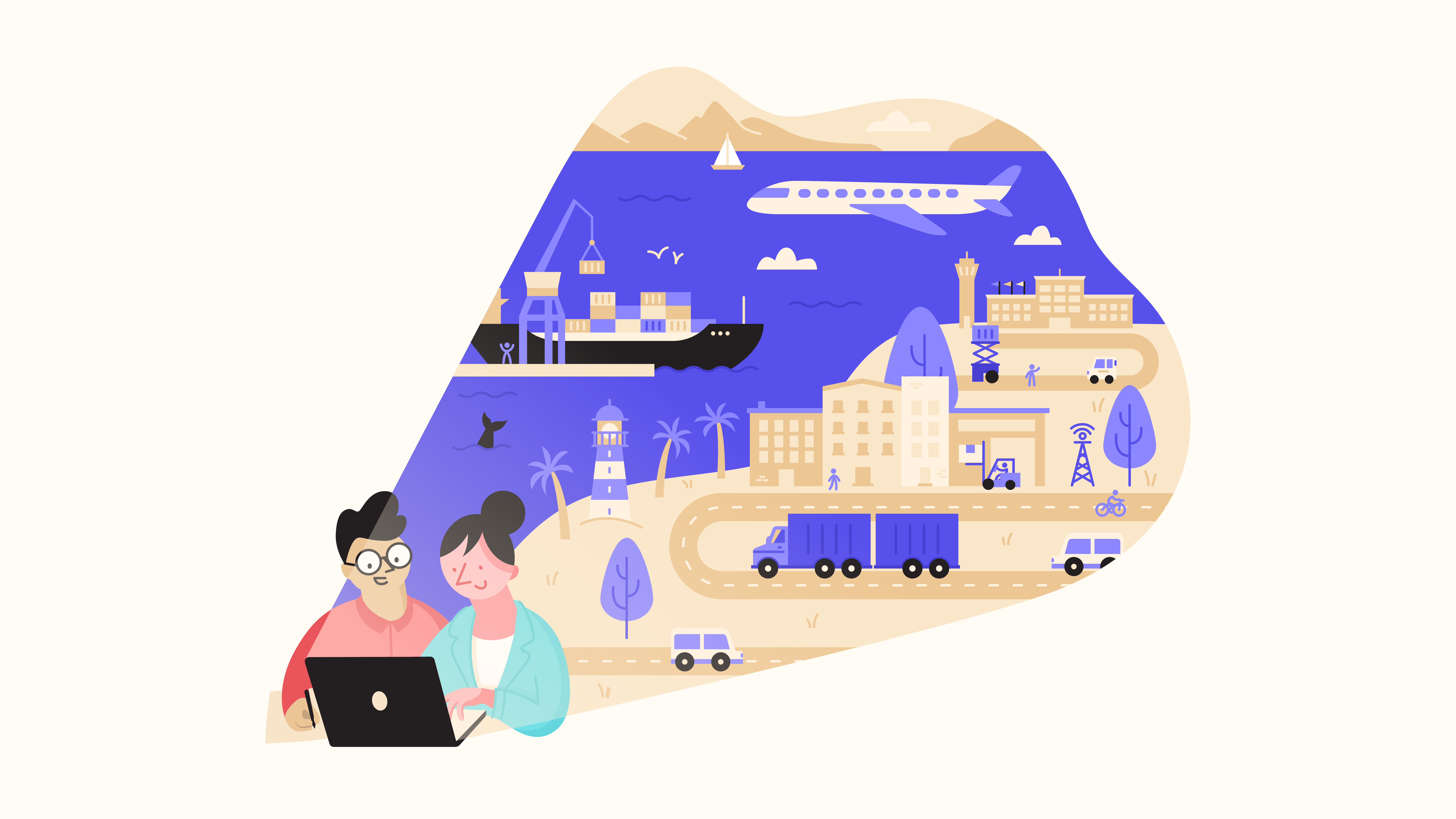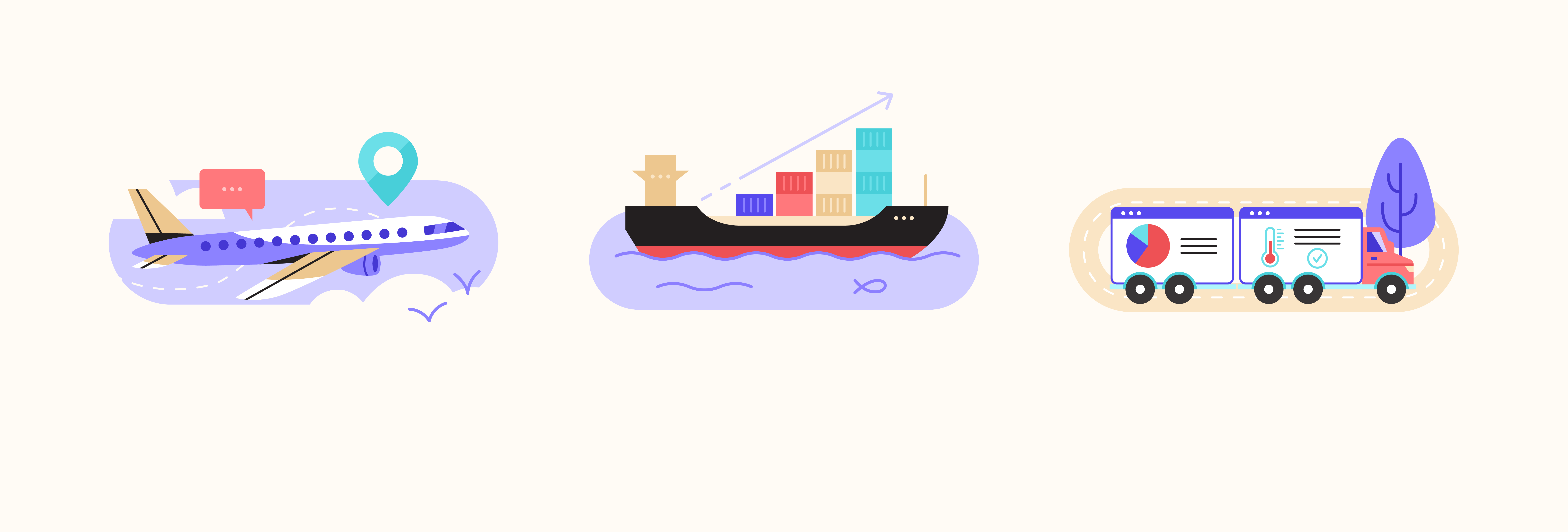 Serie de ilustraciones para la nueva plataforma de Nowports, un agente de carga digital que realiza movimientos de mercancía de forma marítima, aérea y terrestre.