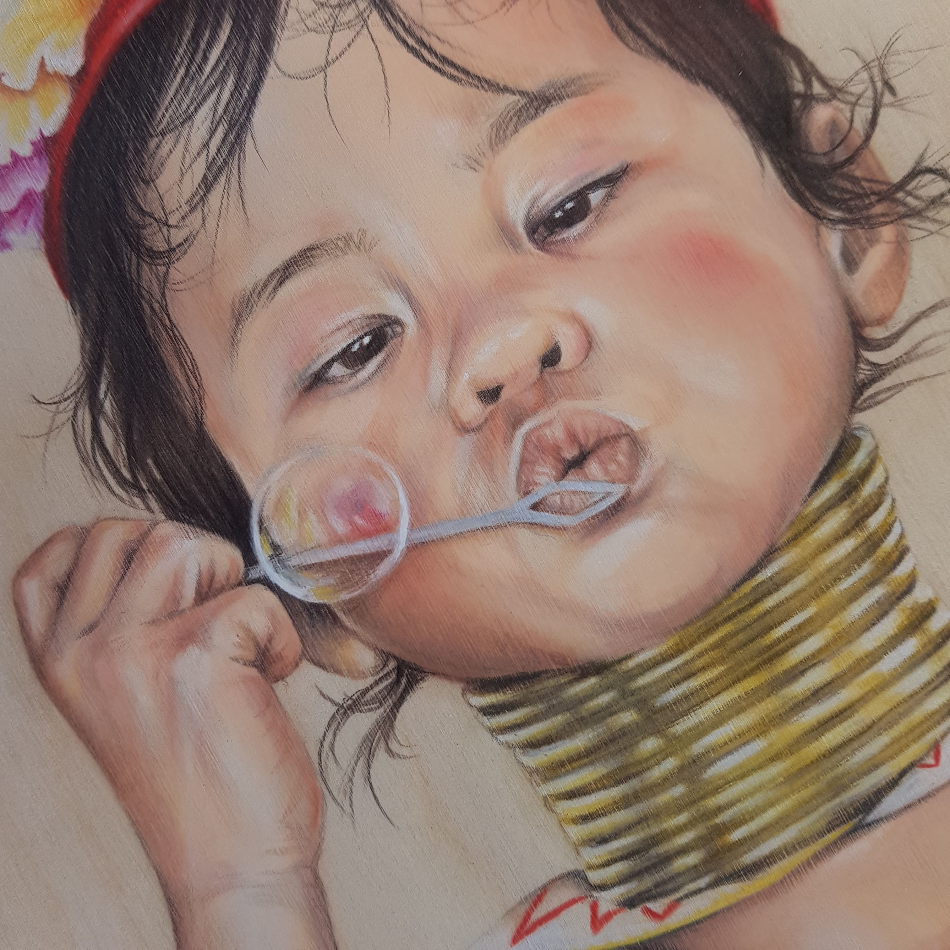 Dibujo realizado en pastel, lápices de colores y algo de grafito sobre madera de abedul. La madera no tiene ningún tratamiento, simplemente la he lijado para que la superficie no sea tan abrasiva.