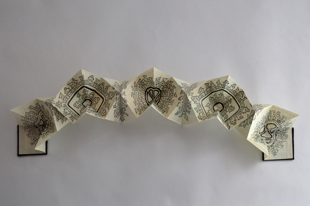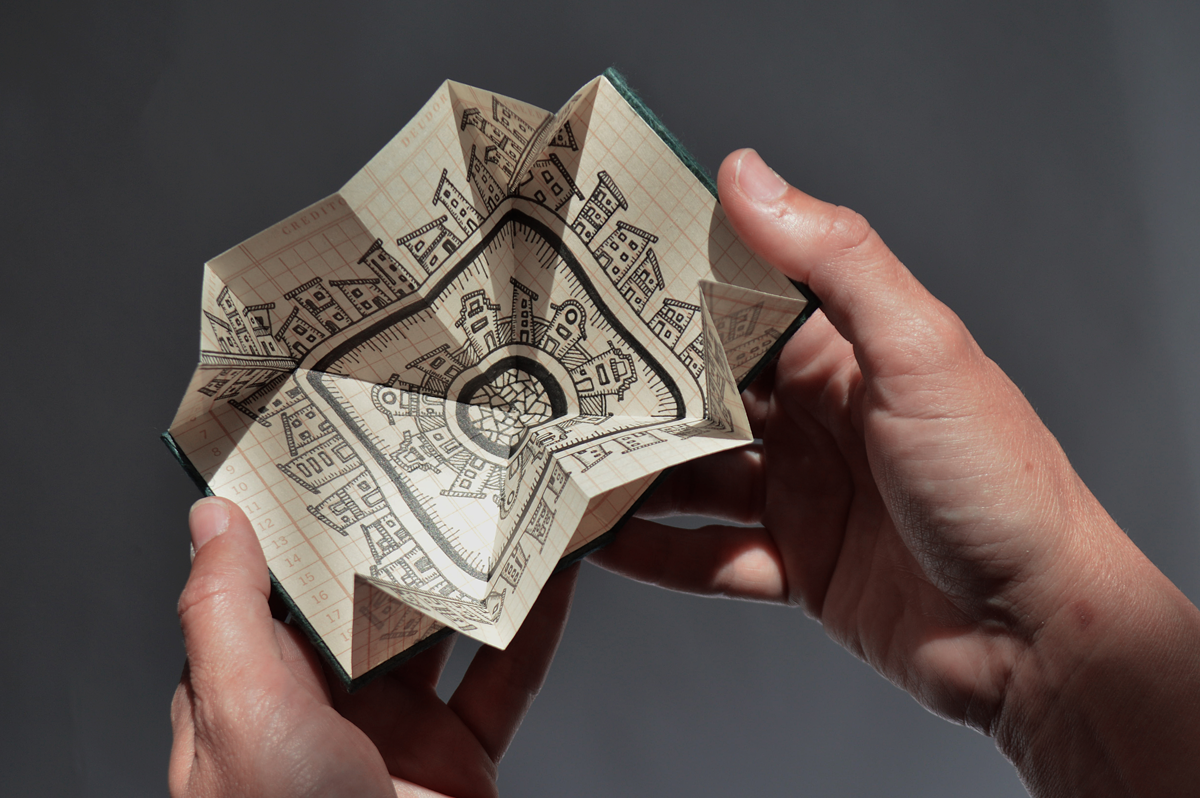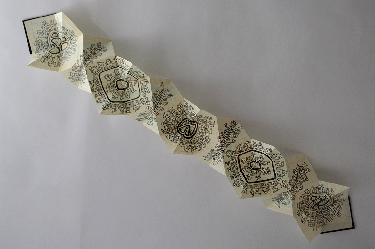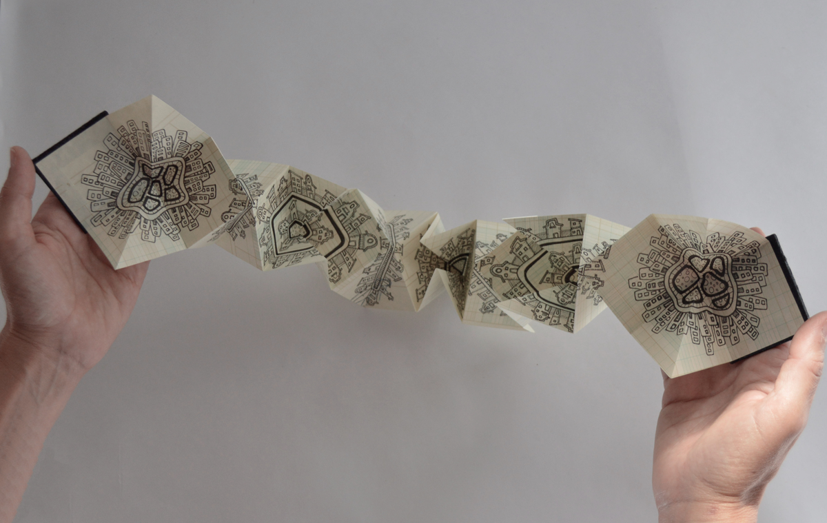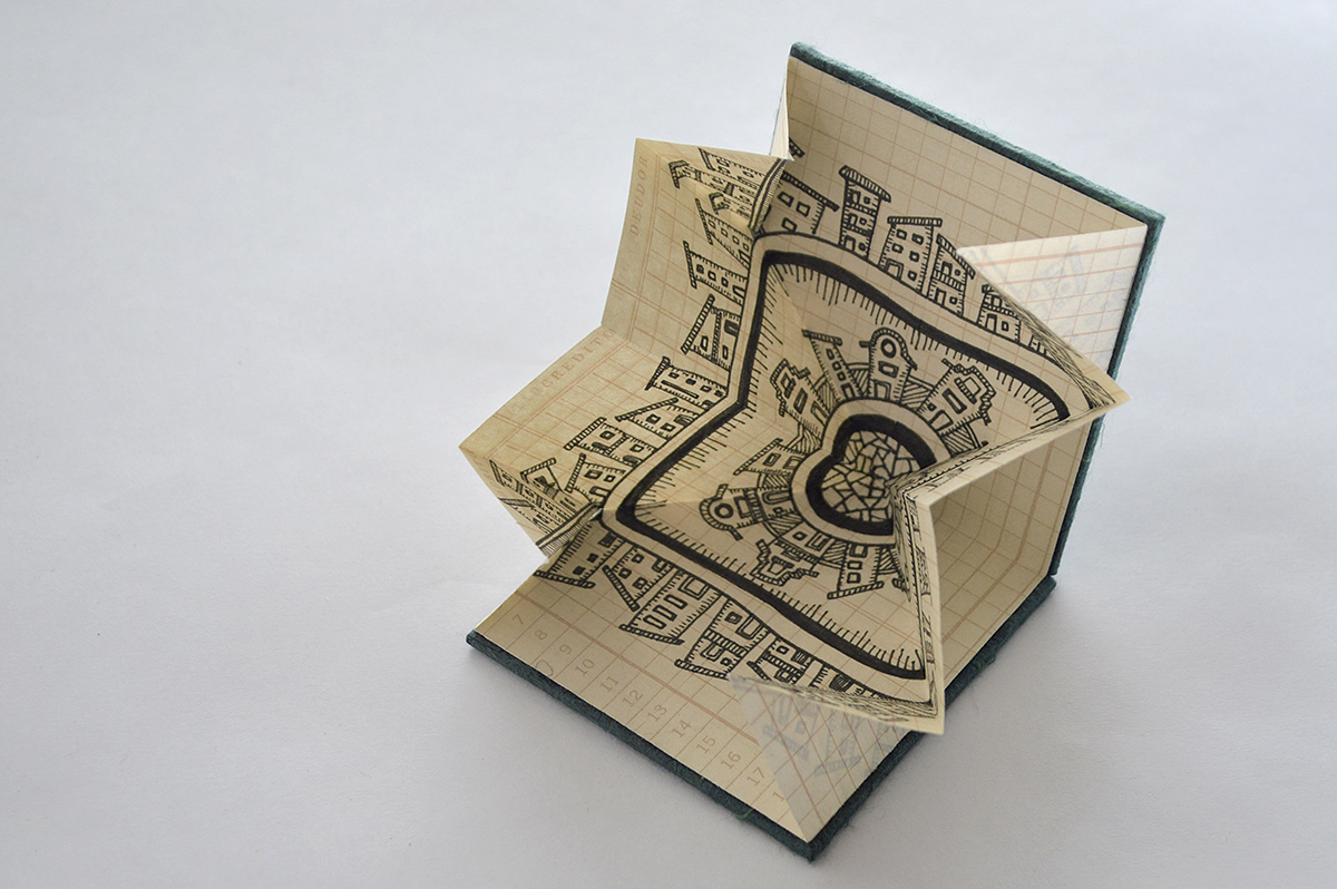 Ciudades Contables - libro de artista, papel de libros de contabilidad plegado y tinta