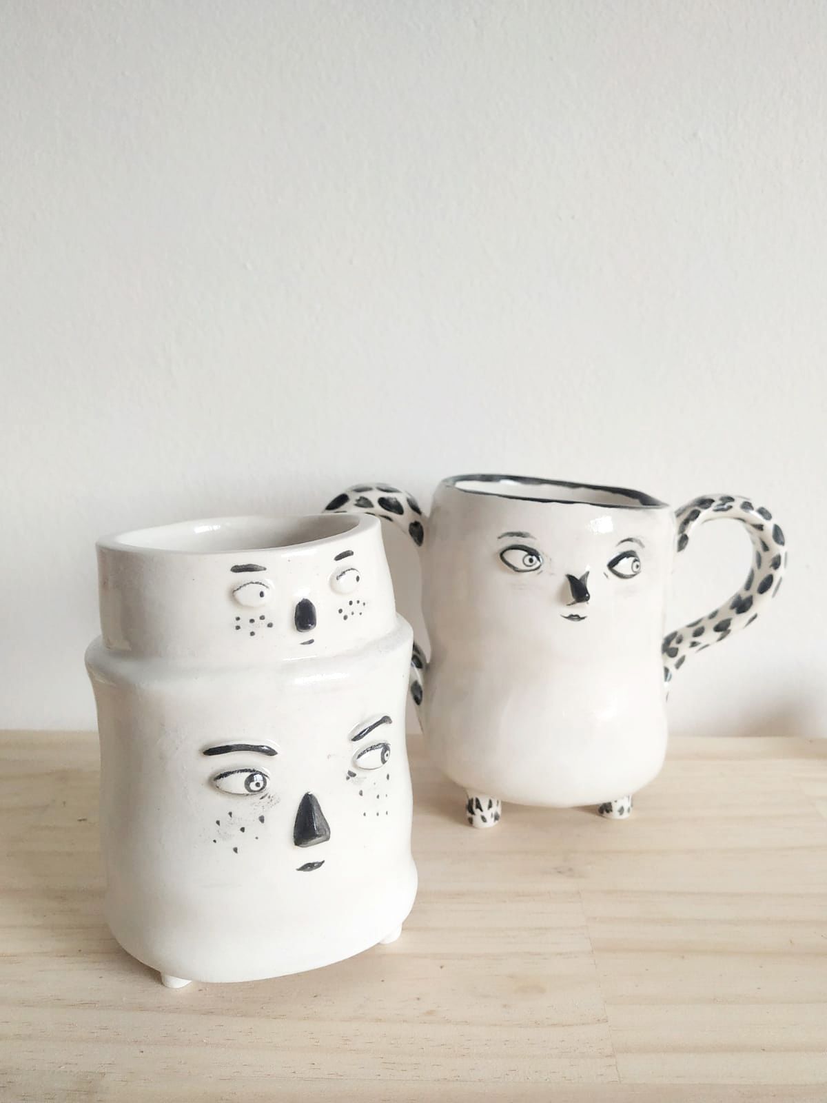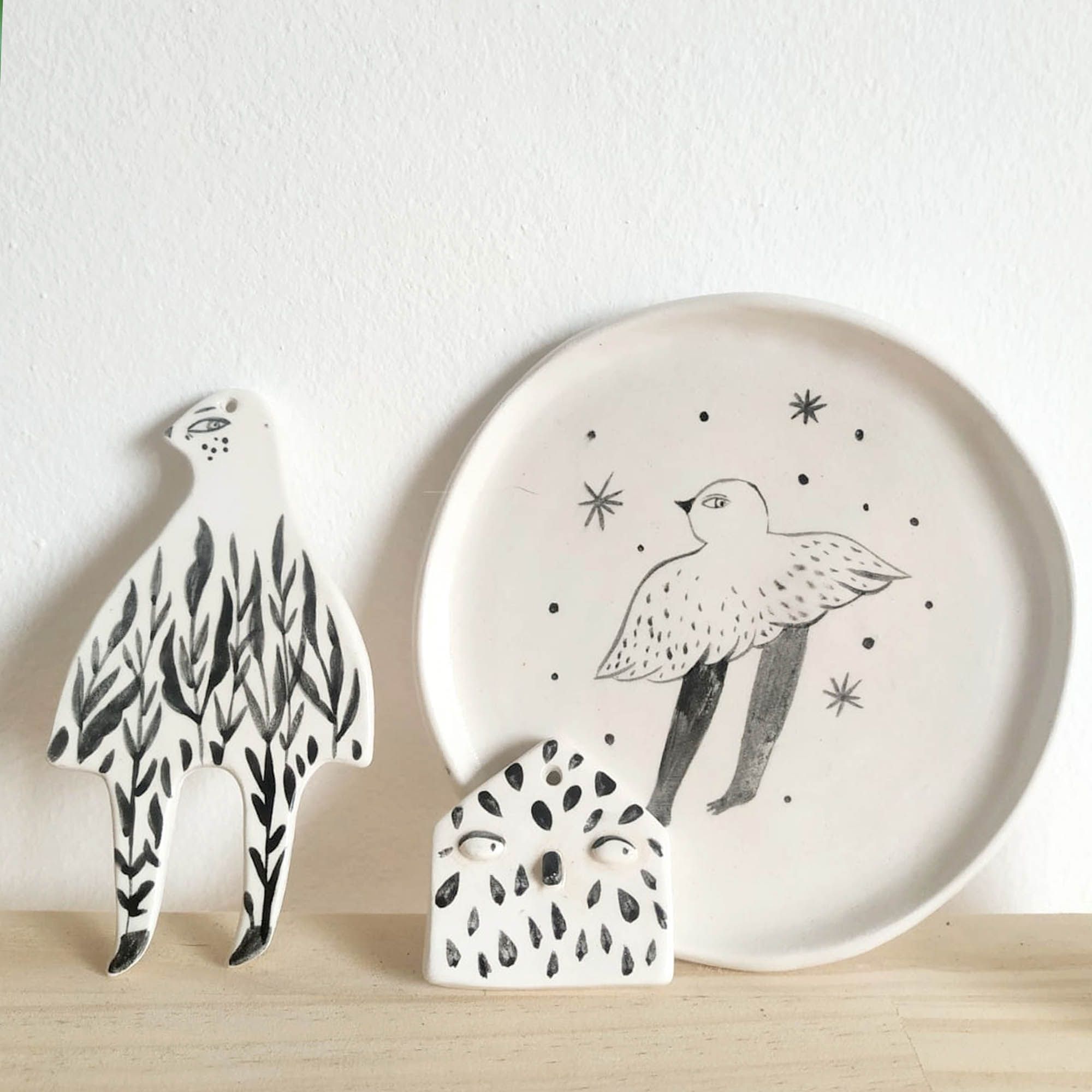 Están realizadas en loza y no hay dos iguales. Algunas pueden adquirirse en mi reciente tienda de Etsy, Oh, Merricat!