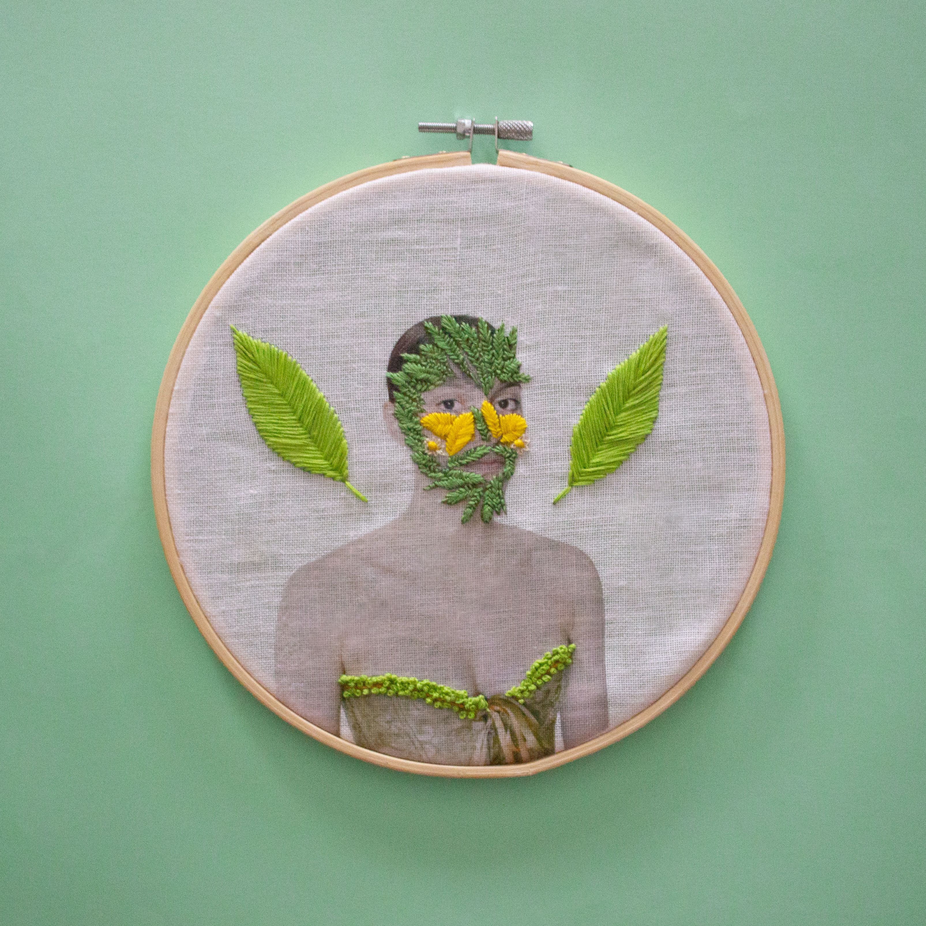 Nel primo progetto ho ricamato una mia immagine della serie " Madre Natura"