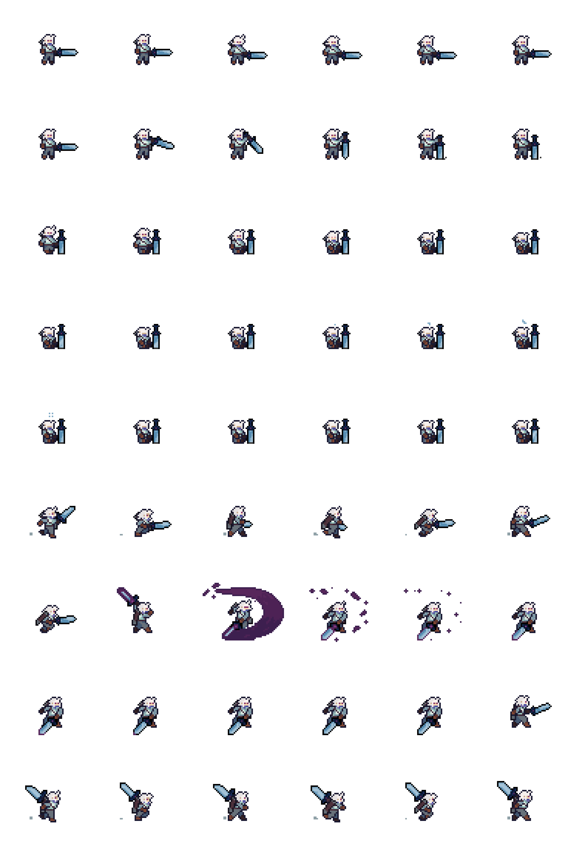 A continuación dejo las diferentes animaciones. Espero que gusten a tod@s aquell@s que las vean. (La escala de las animaciones y del sprite sheet es de x3)