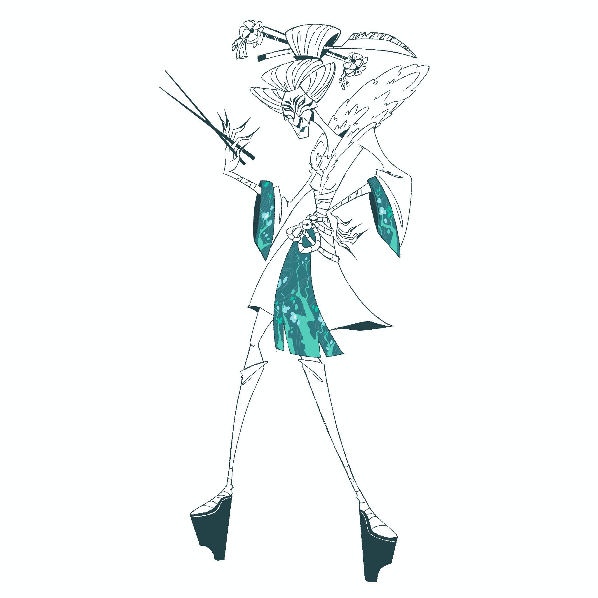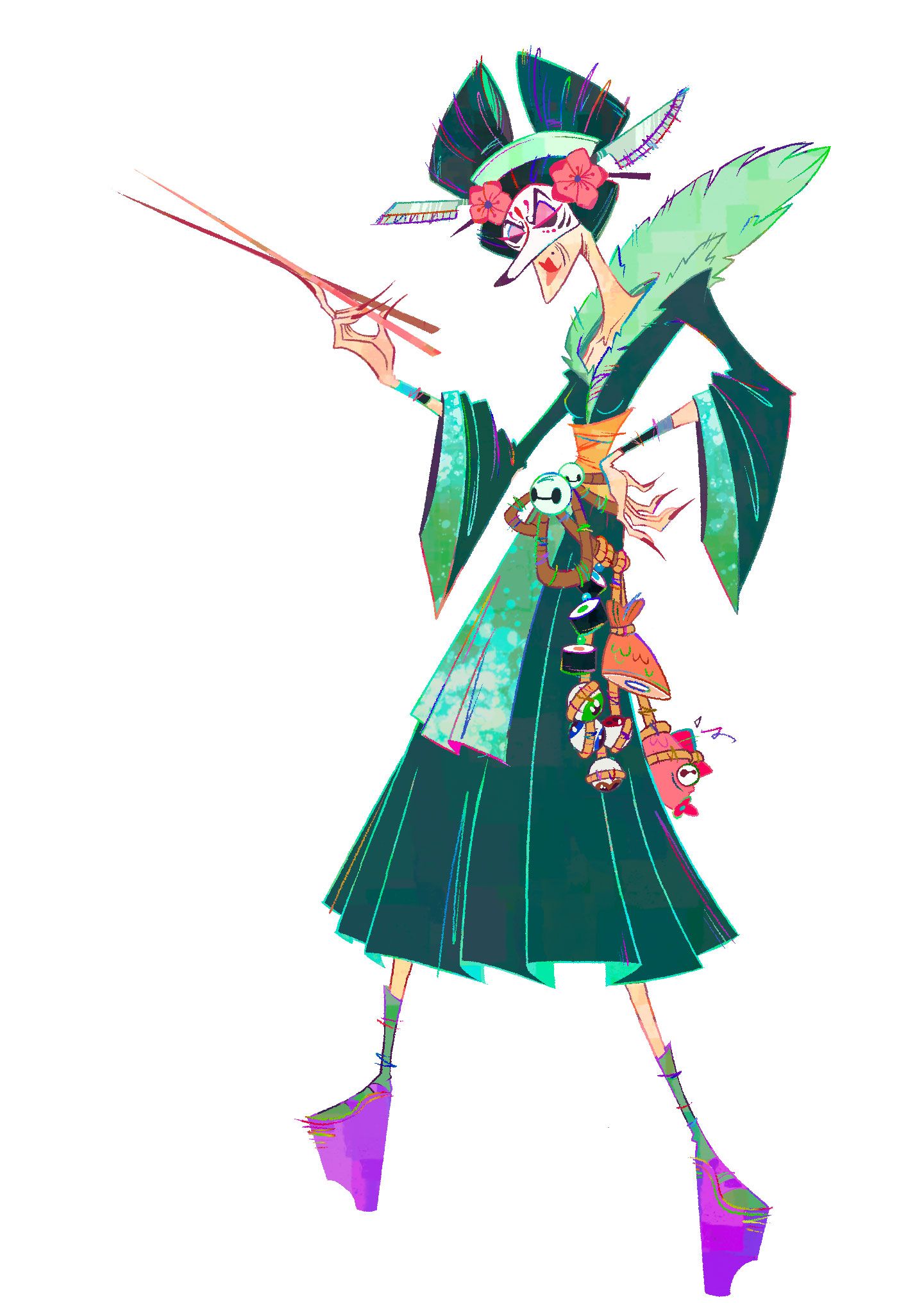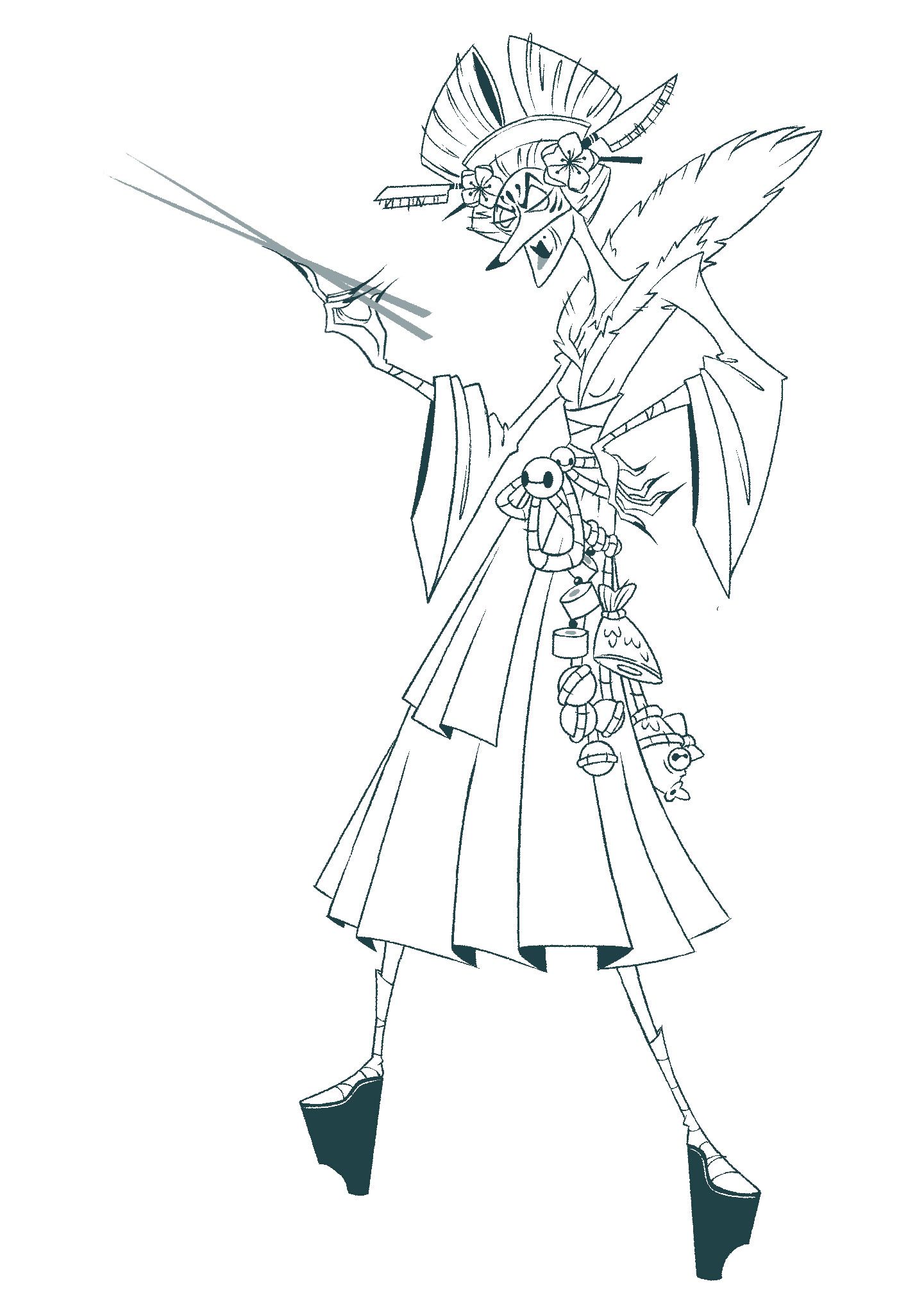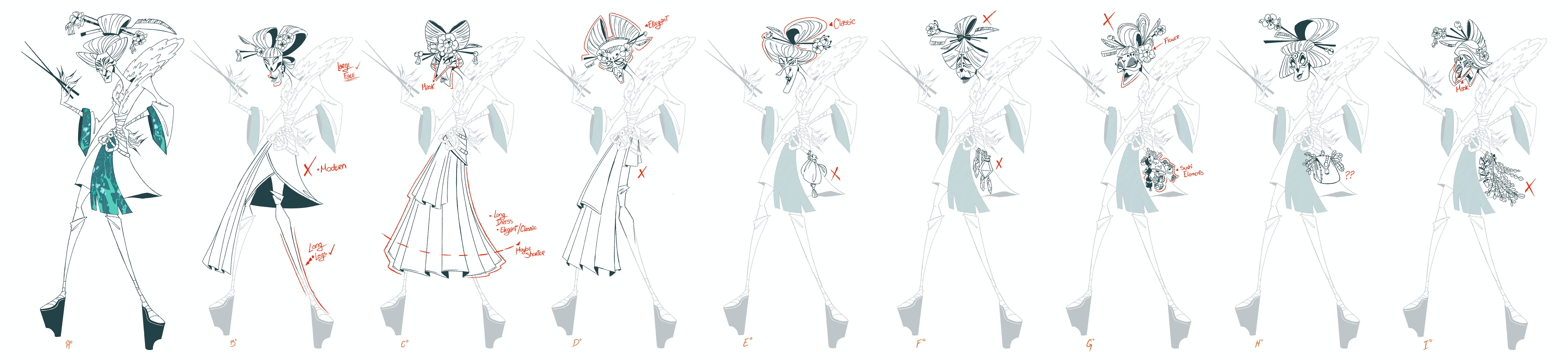 La idea que tenia en un principio me gustaba porque el personaje mostraba mejor la silueta, se veía mas afilada y malvada.