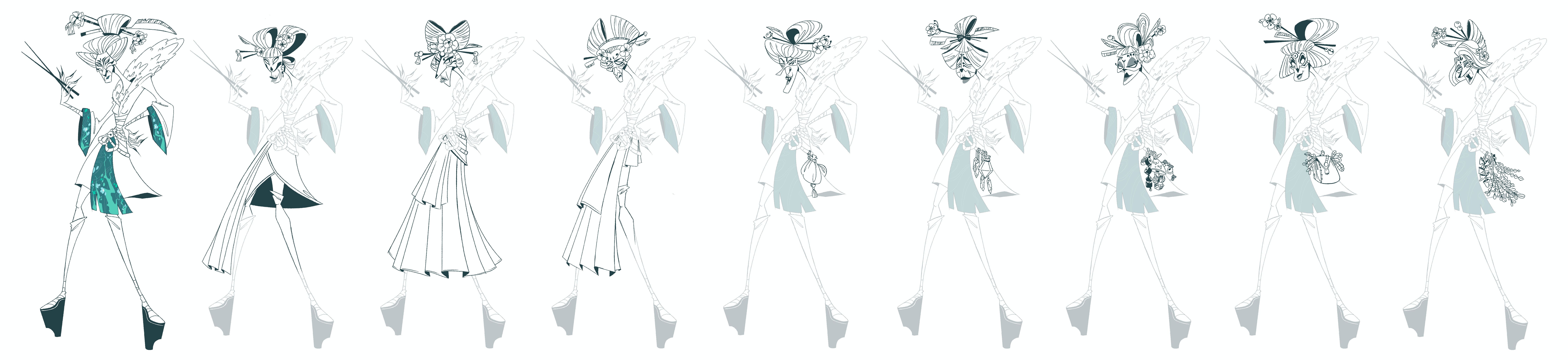 Por lo que hice varias pruebas de mascaras, formas de rostro y de cabello, así como de vestimenta.