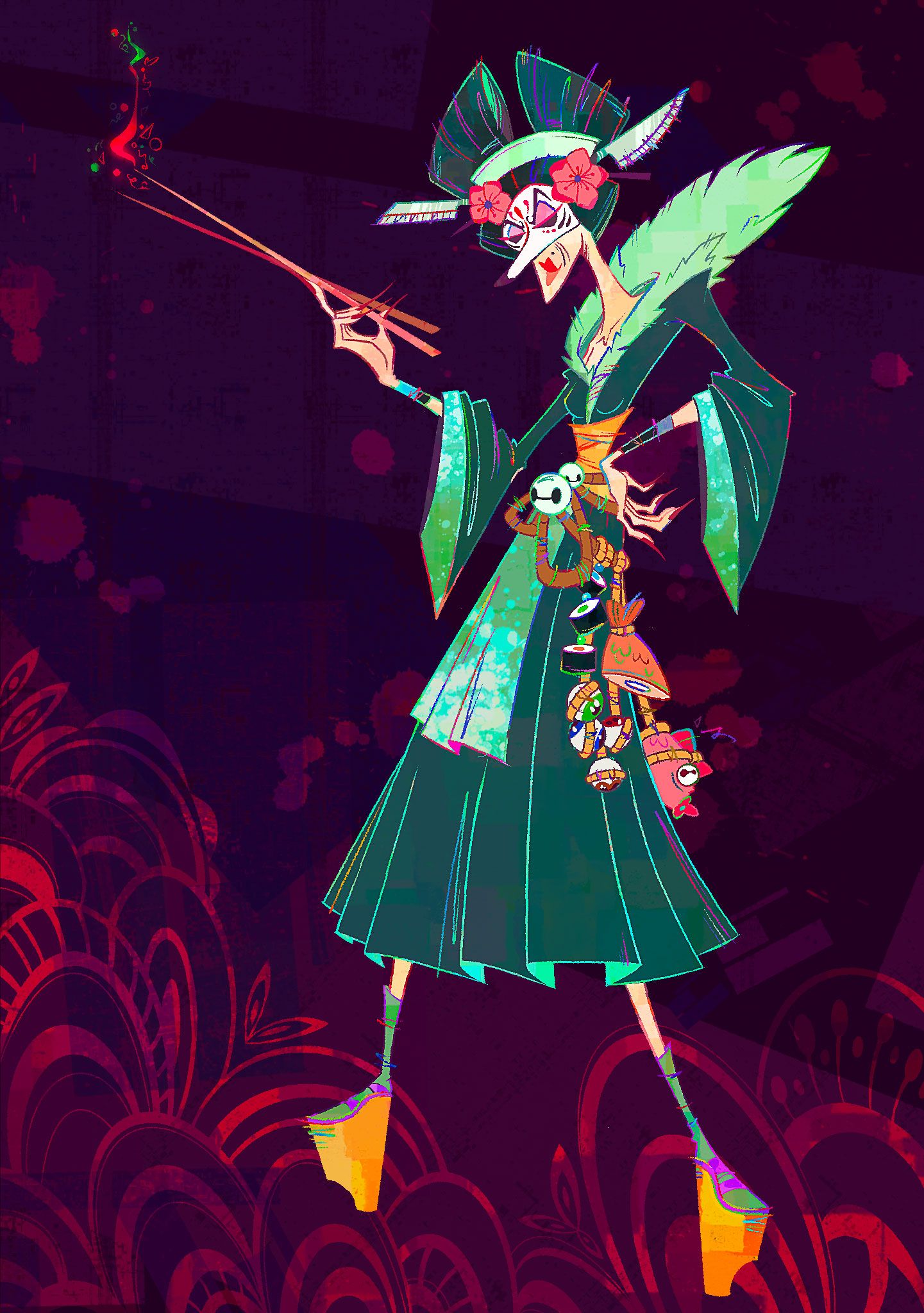 Pero al mismo tiempo es muy corta la falda para una chef de 60 años (No era lo apropiado XD). también hice ideas de bolsas, hierbas o elementos que acompañen su historia de brujería y de chef.