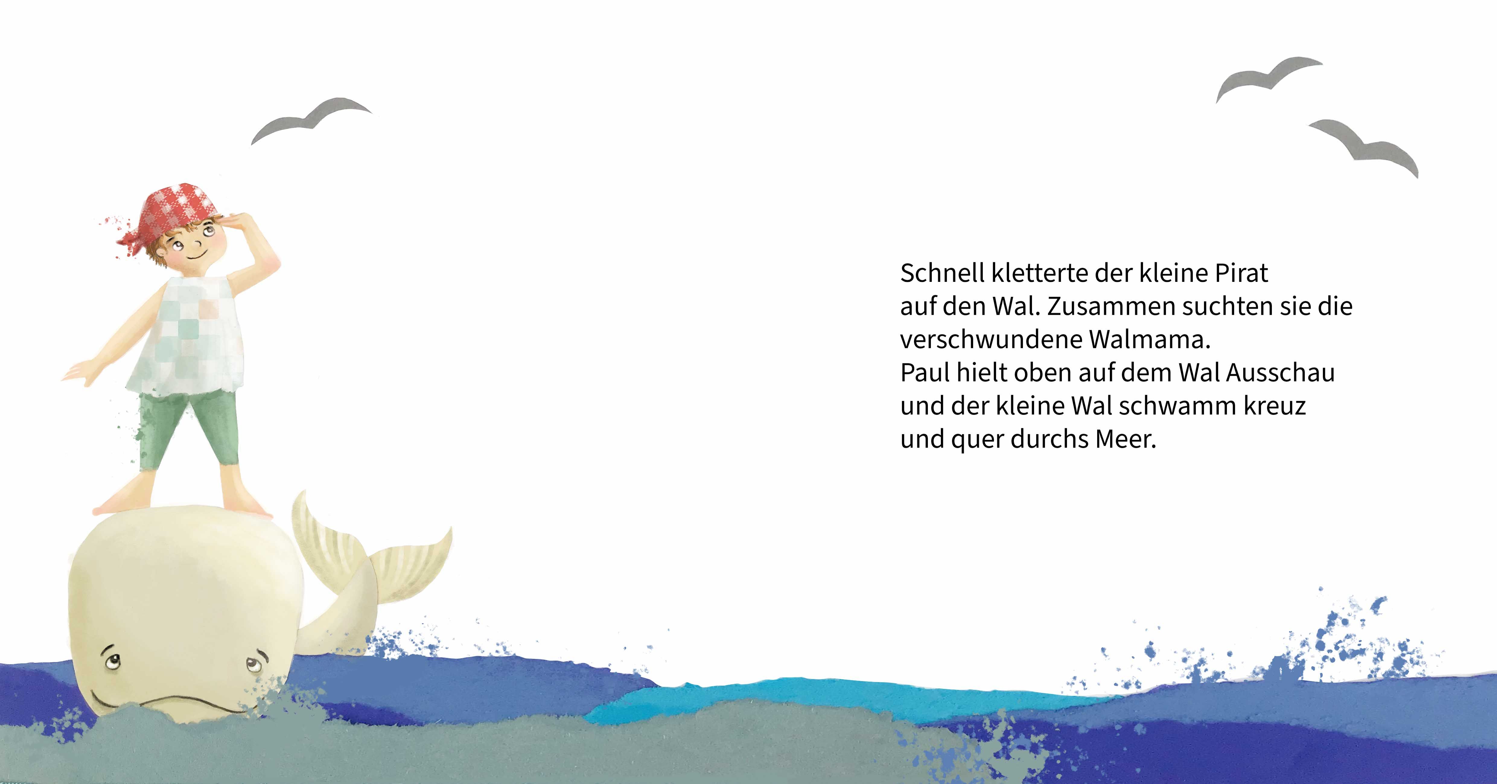 In meiner Geschichte geht es um den kleinen Piraten Paul, der auf ein trauriges Walkind trifft. Der kleine Wal kann seine Mama nicht mehr finden. Paul möchte dem Wal helfen und gemeinsam machen Sie sich auf die Suche.