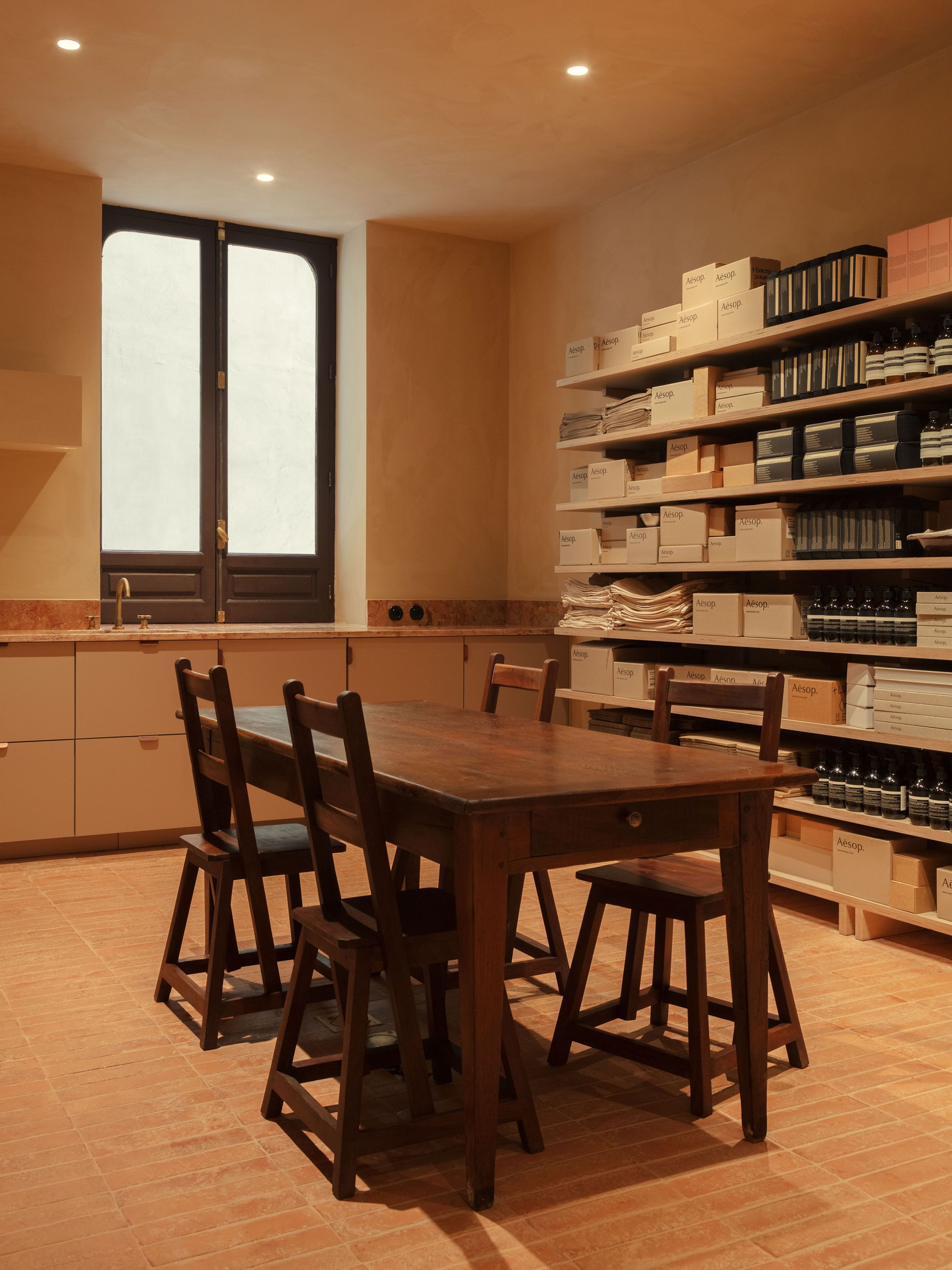 Following Aesop’s customary attitude of architectural restraint, the 1923 building’s neoclassical façade has been preserved, along with its history of residential use and mid-twentieth-century commercial transformation.
