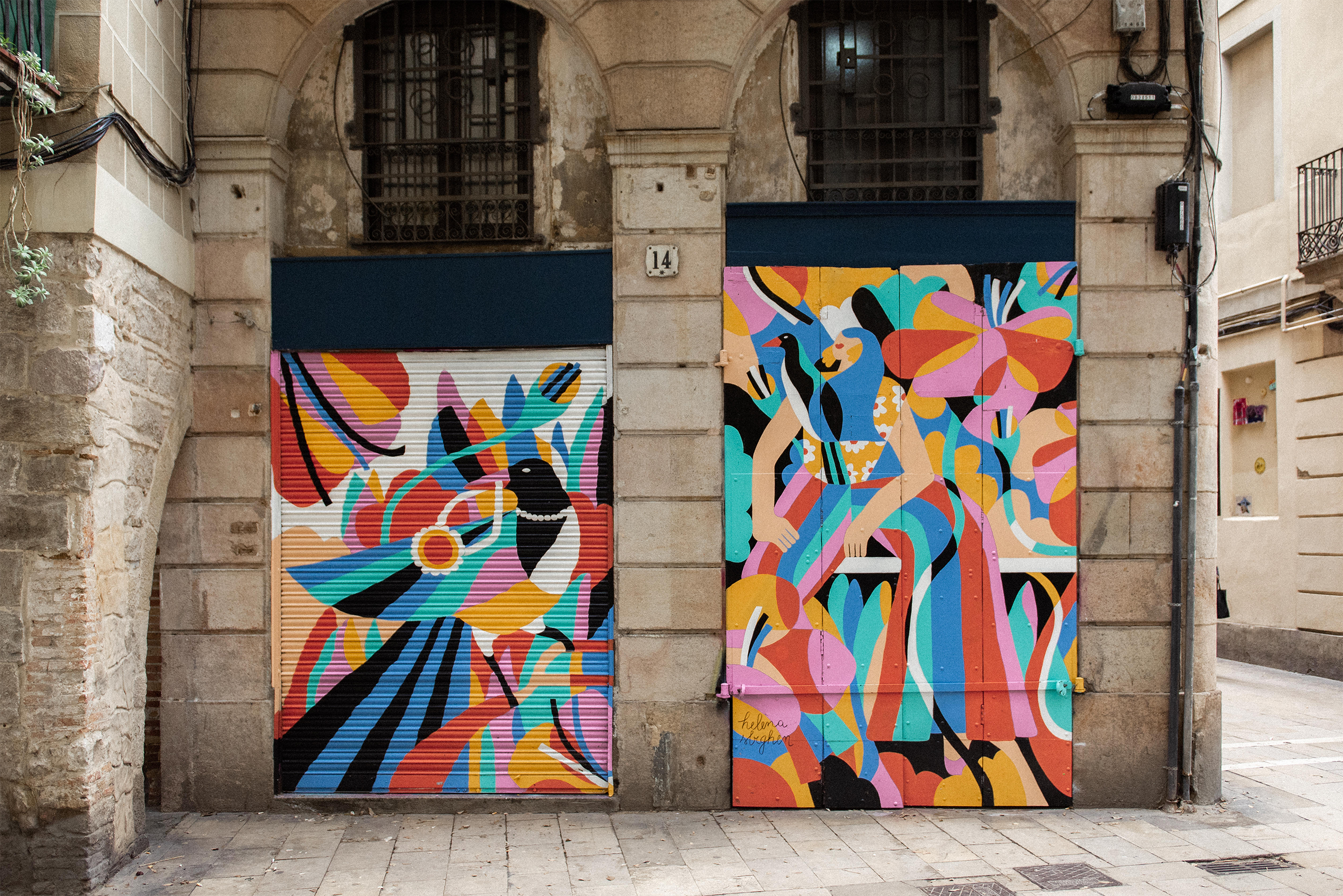 Mural para a loja de roupas vintage Magpie, em Barcelona.