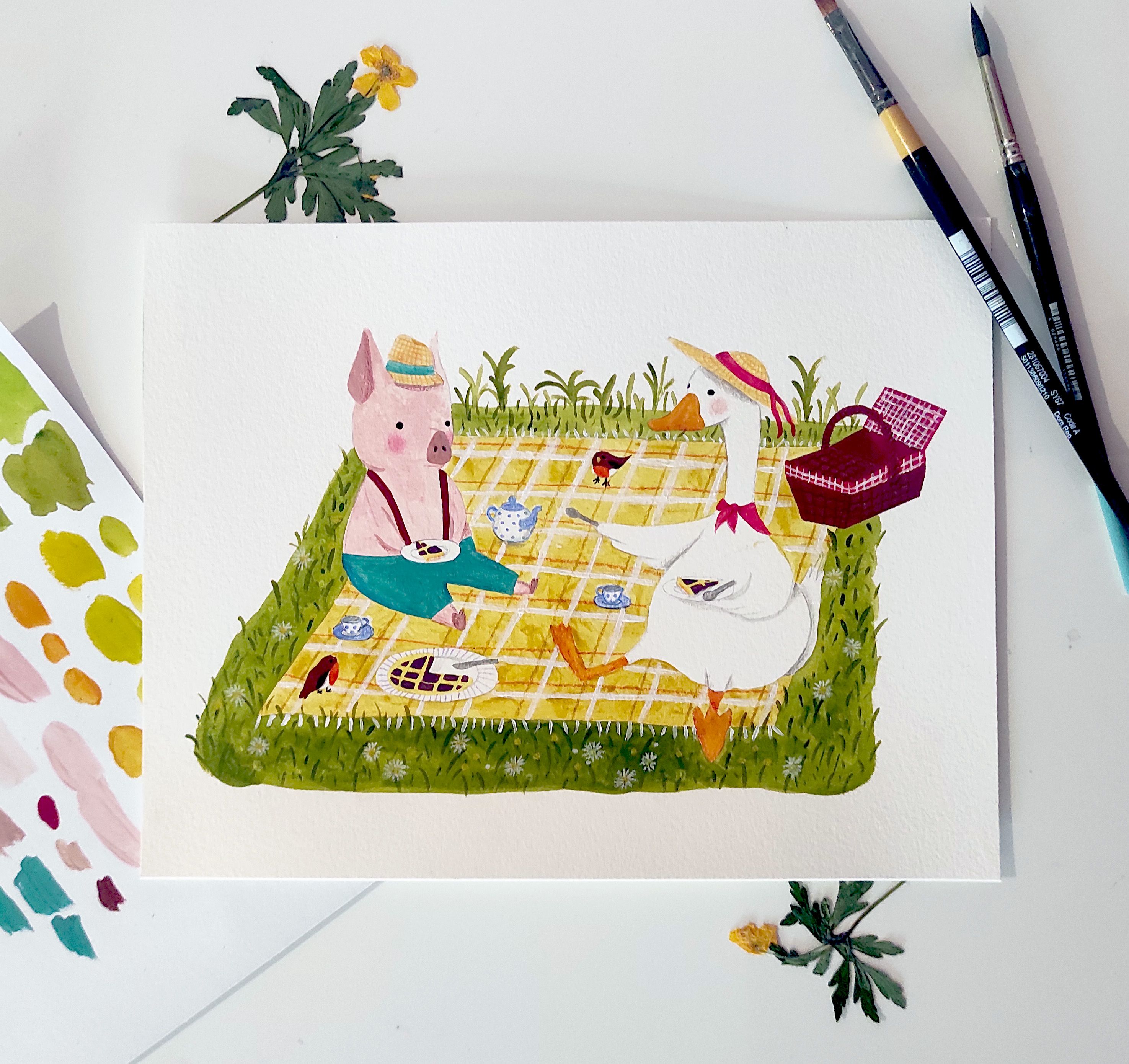 I fell in love with gouache, which I'd never used before. I used old, cheap tubes and basic watercolour paper.