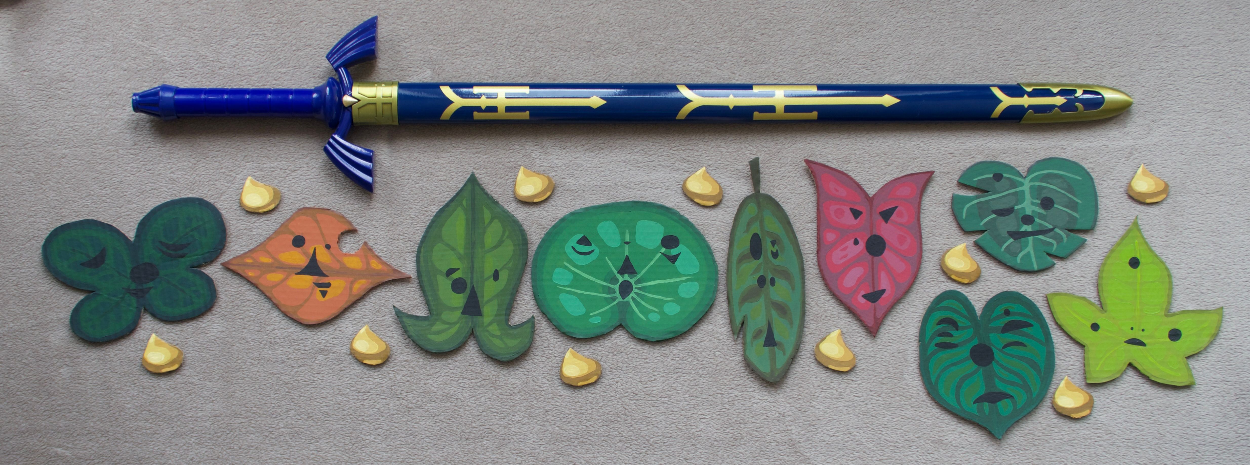 Petit projet d’il y a quelques mois pour décorer les murs de mon appartement ! Il me restait plein de chutes de cartons, et pour éviter de les jeter, je les ai peint en forme de masques korogu des jeux The Legend of Zelda.