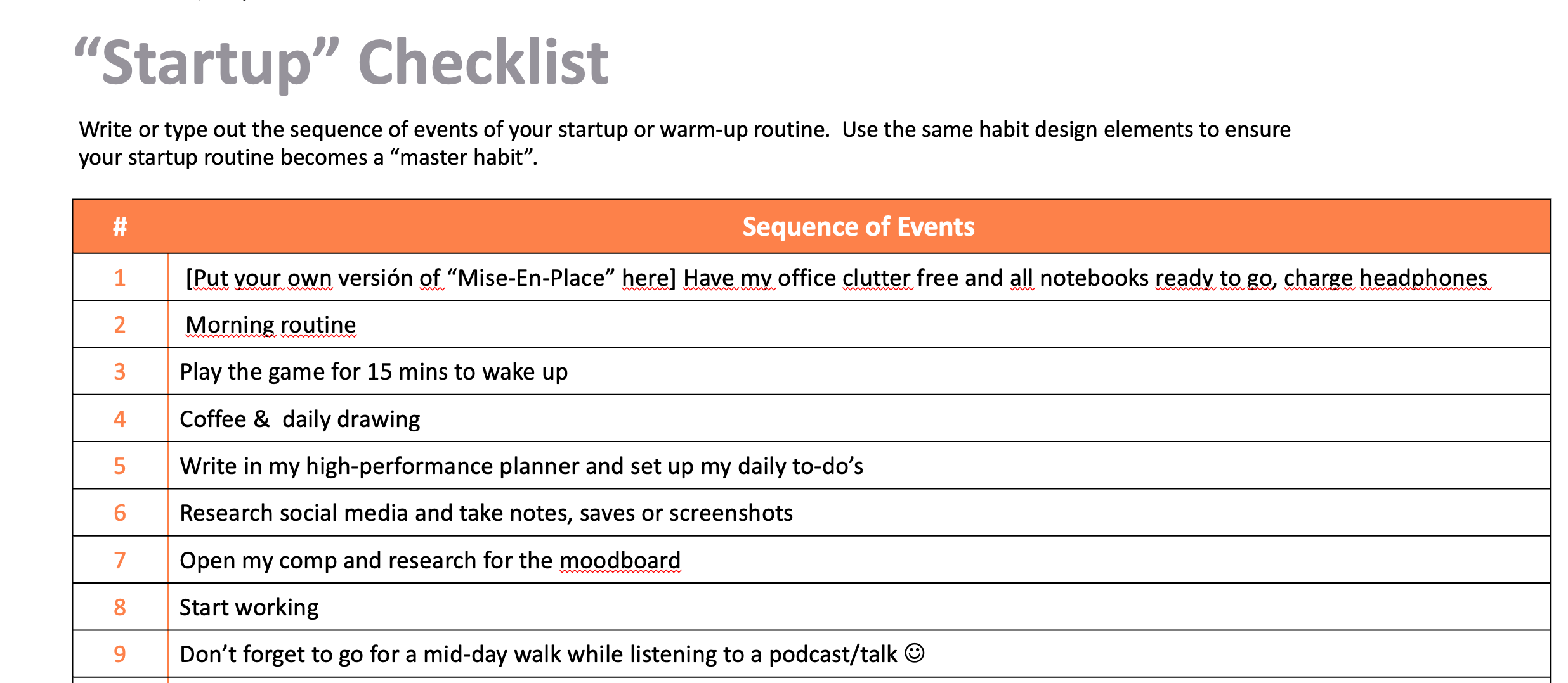 I've been using the blocking method for some time but IT NEVER WORKS for me, sadly. I get distracted or my schedule shifts. So I only identify major routines in my schedule and everything else is blocked as "studio hours" or "admin". Then I write my 3 goals for the day and small to-dos. It's ok if I don't accomplish everything for the day. Tomorrow is another day :)