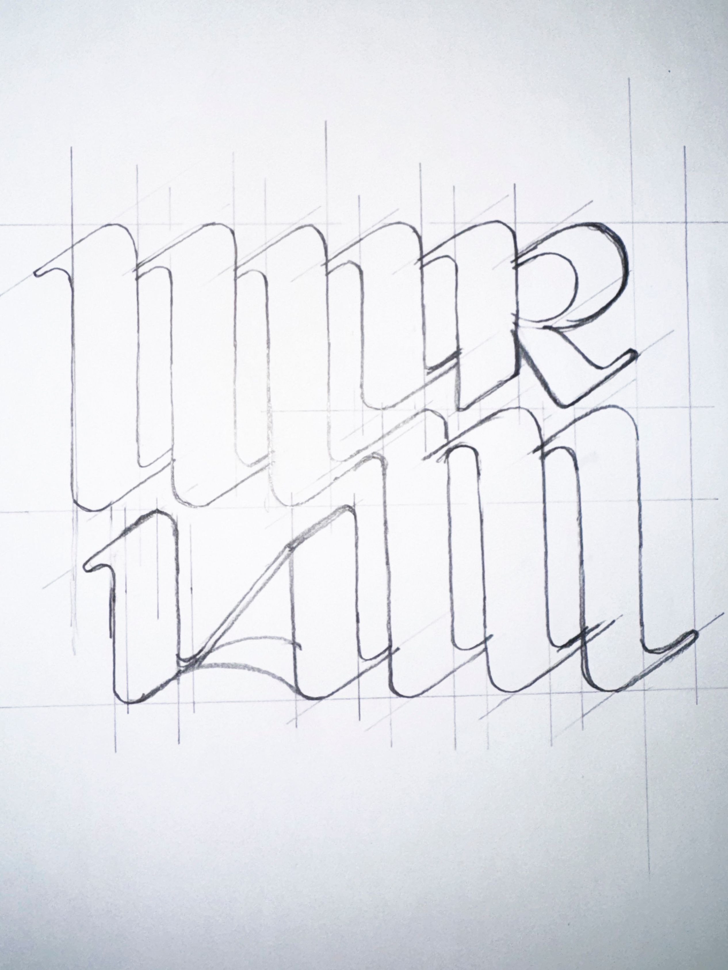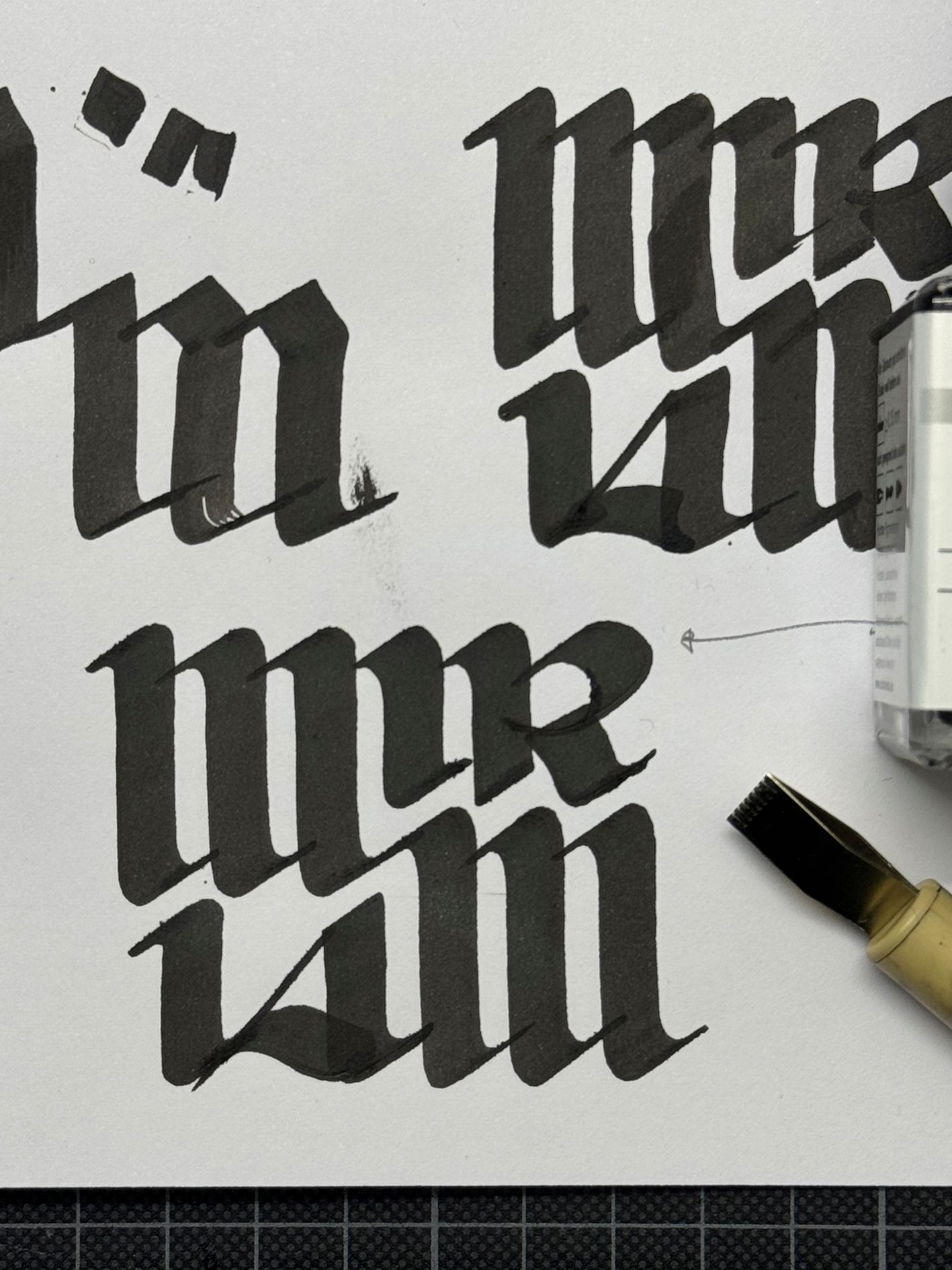 Teken met de hand met een parallelpen en zwarte inkt. Verfijn vervolgens de potloodschets en vectoriseer deze in Illustrator.