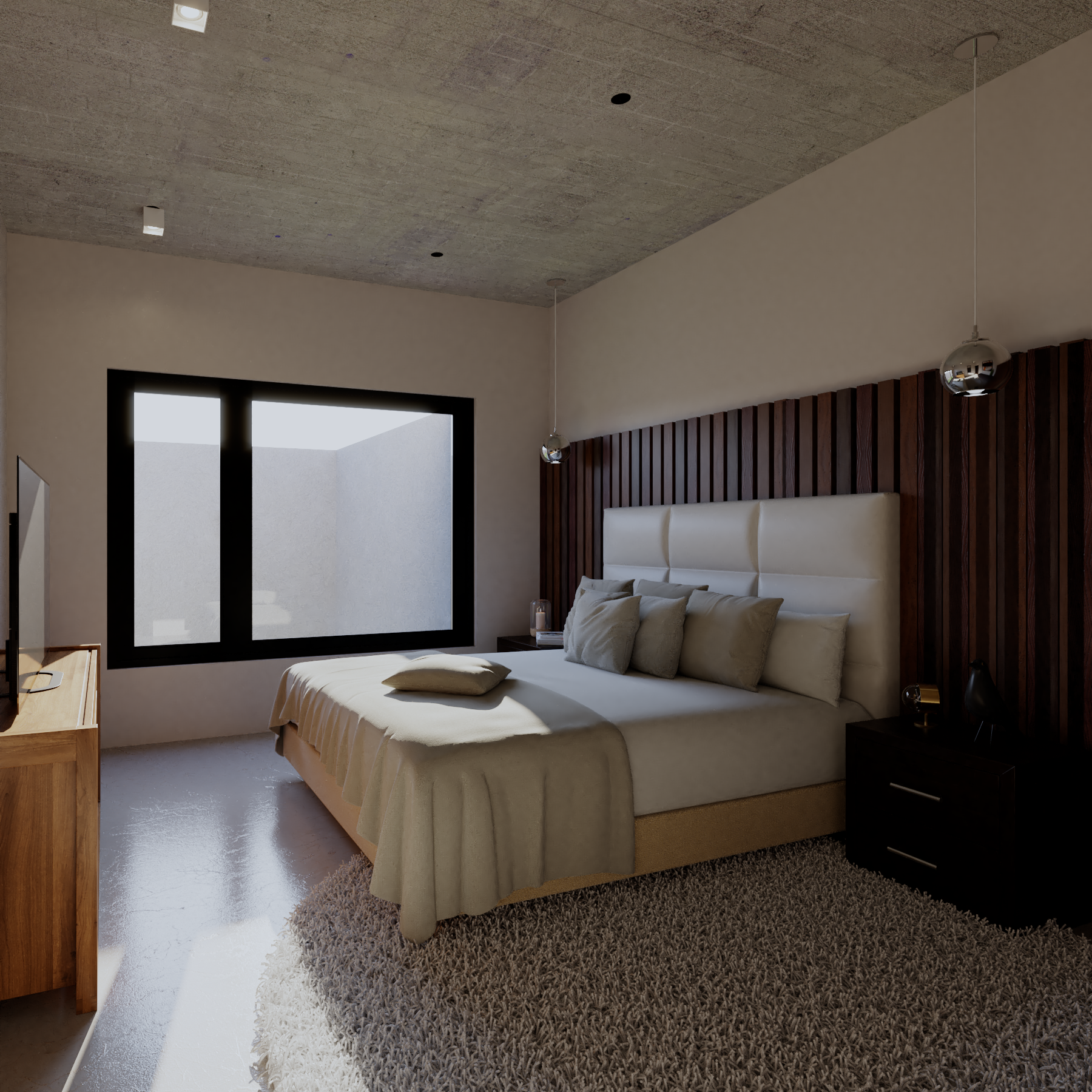 Este proyecto nace del deseo de mostrar mi progreso y dominio en el software de modelado 3D y renderizado V-Ray. La inspiración para el diseño de los espacios proviene de proyectos como "Casa Origami / Estudio DA VÀNG", "Casa en Praia do Forte / Vereda Arquitectos" y "Residencia Kaimakli / Anastasiou Misseri", que comparten una estética minimalista y una conexión con la luz y la naturaleza.