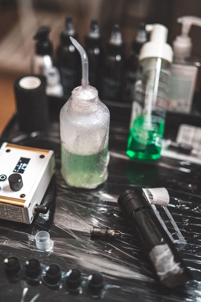 maquina de tatuar grip agujas pipeta fuente campos aislantes cups