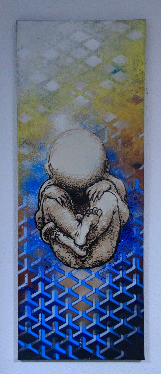 Multilayer a partir del descubrimiento de los últimos manuscritos de Da Vinci donde se ilustran fetos humanos. La obra señala la frialdad de la tecnología.