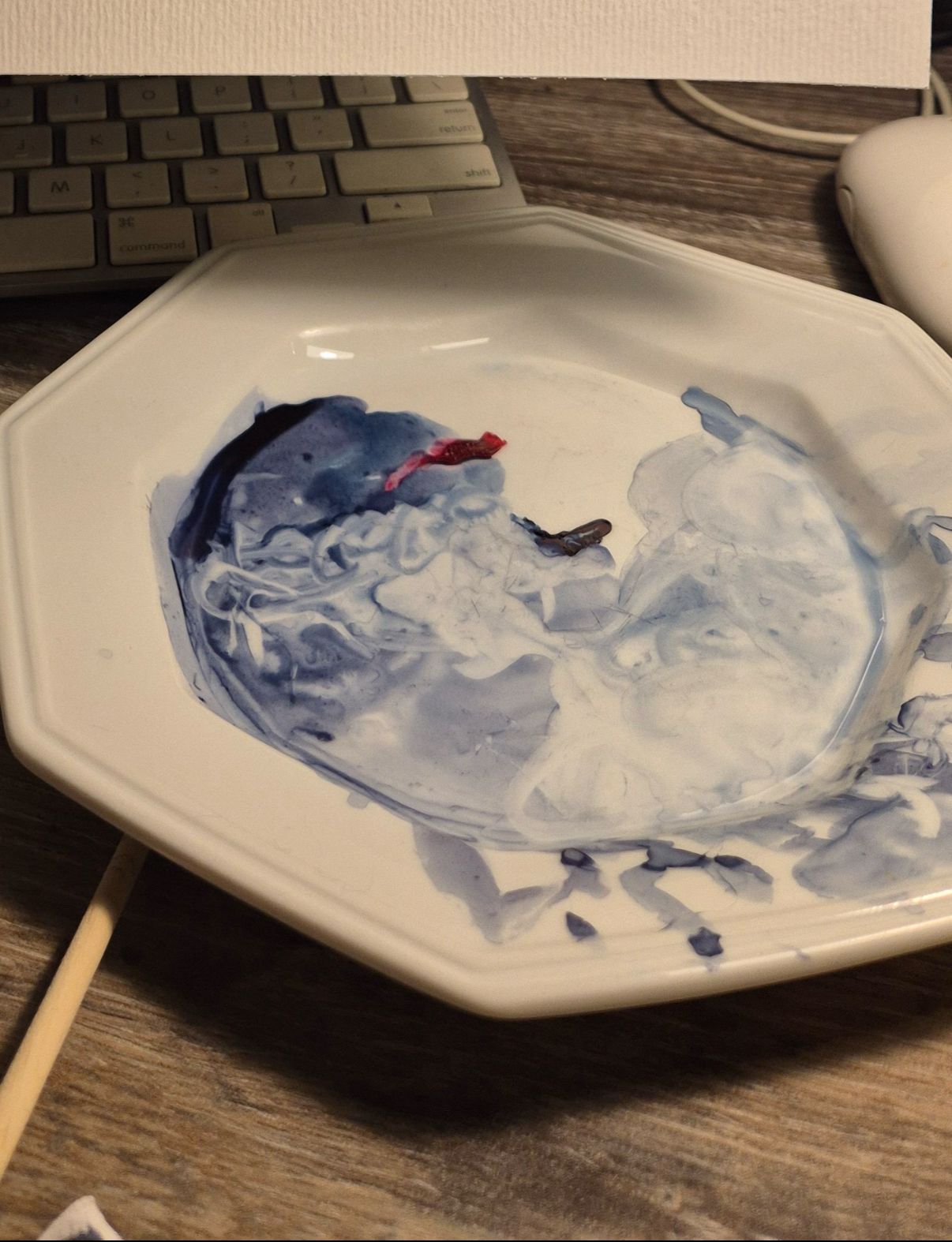 Tentei adicionar um fundo à minha pintura. Sou um pouco insegura para pintar o mar, mas gostei do resultado.
