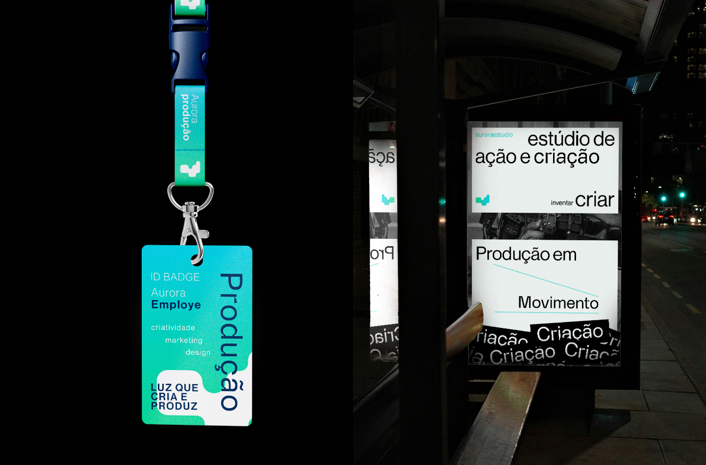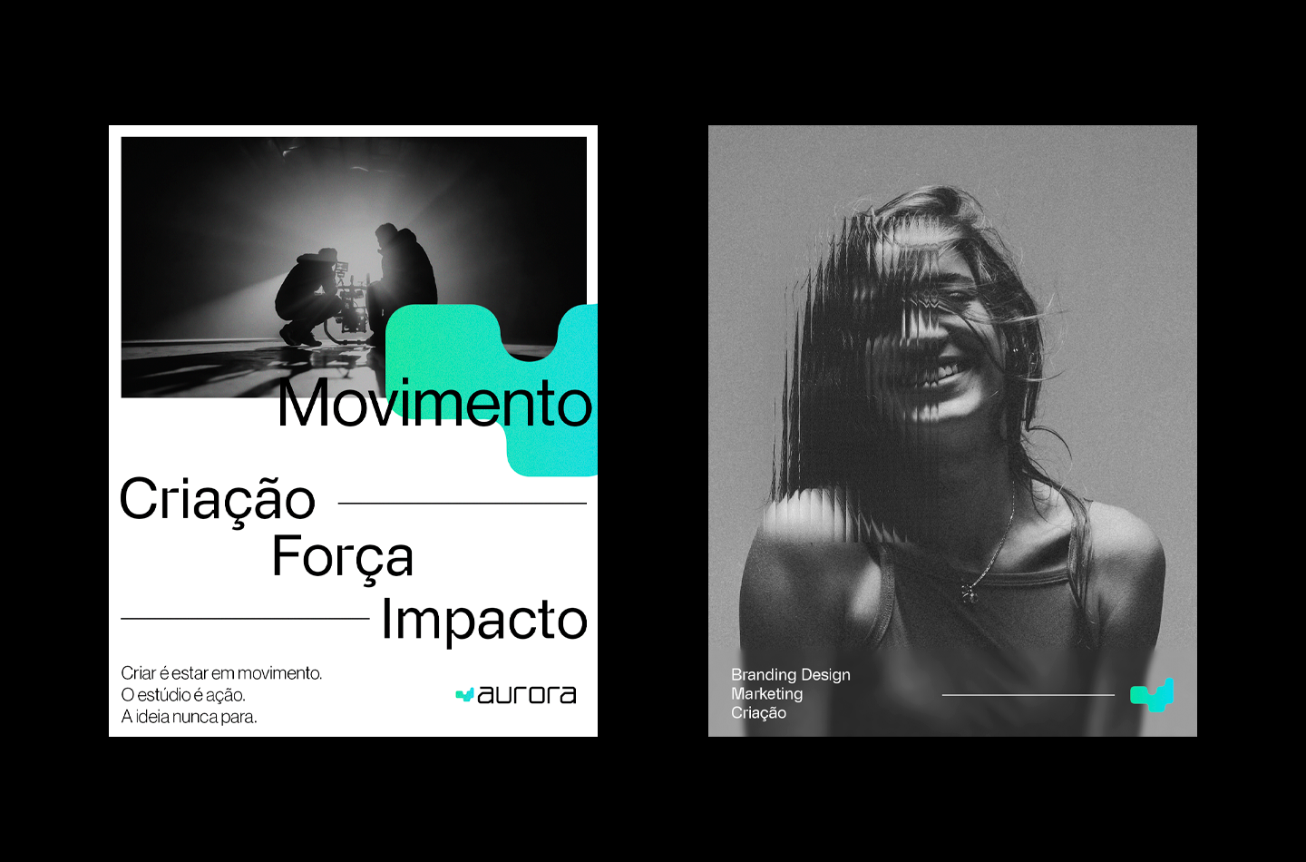 Essa construção tipográfica reflete a essência do estúdio Aurora: inovador, versátil e preparado para enfrentar
