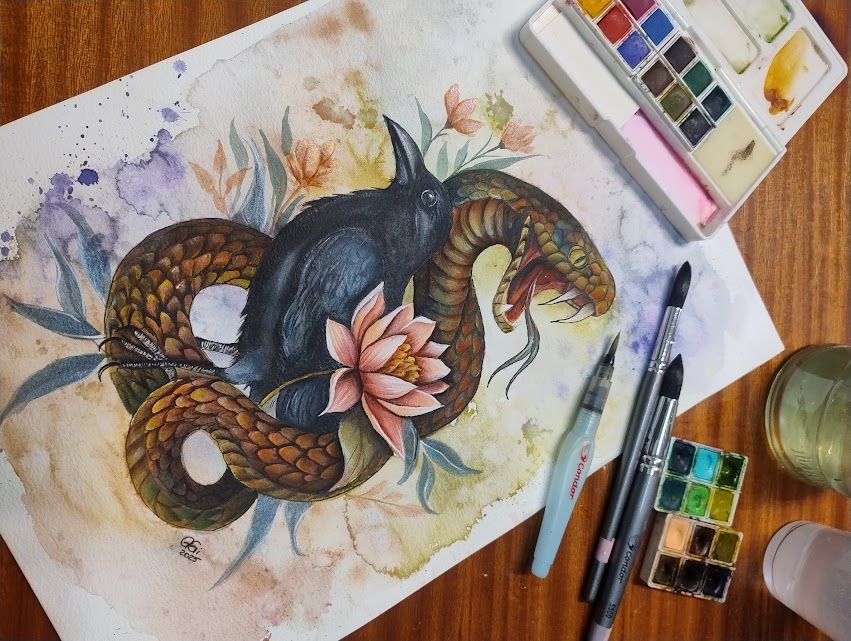 Entre pinceladas cautelosas, respirações profundas e coragem em cada traço, a serpente deixou de ser apenas um símbolo de fobia… e se tornou parte da minha linguagem artística.