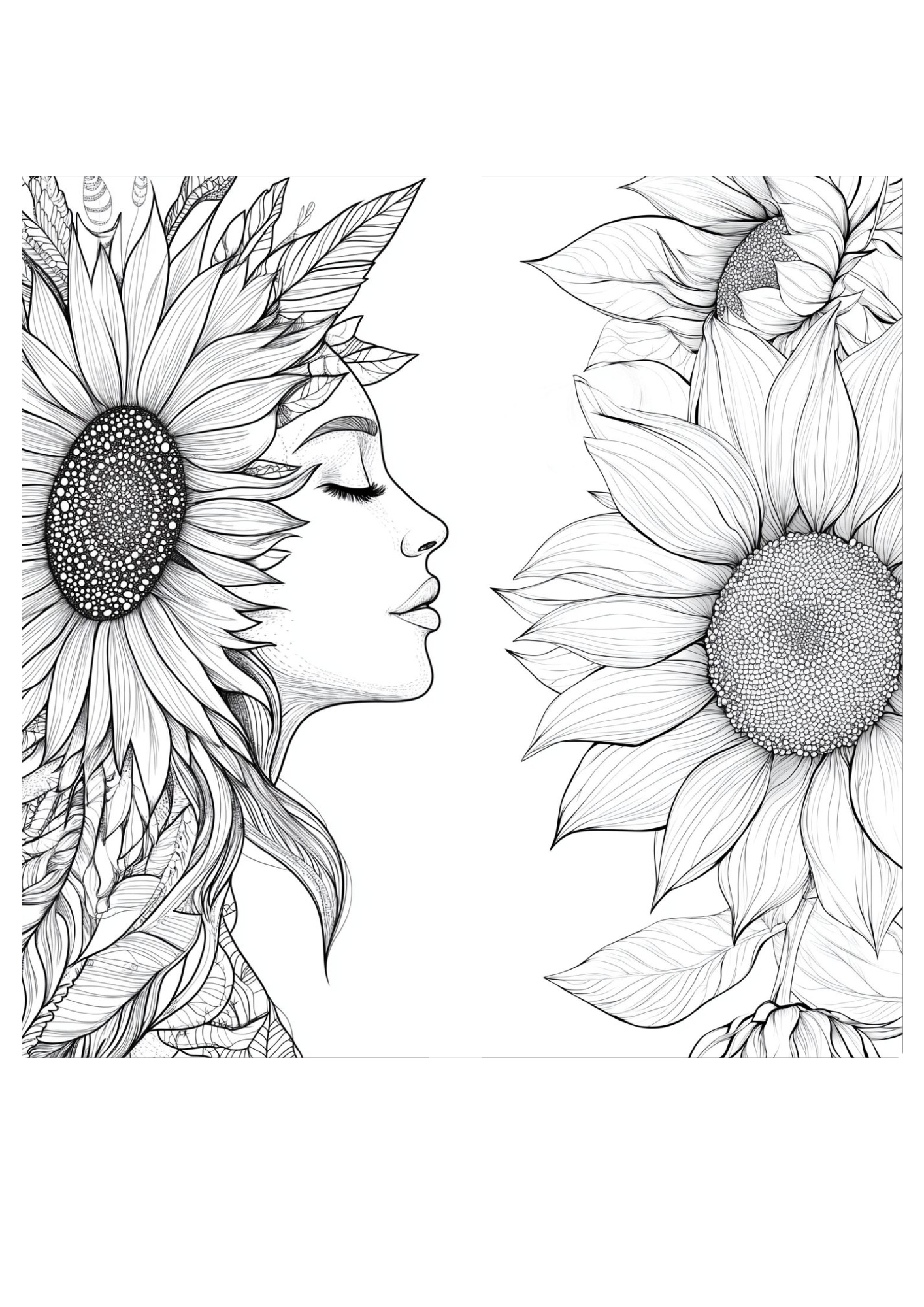 Comecei por fazer contornos interiores e exteriores e depois os detalhes de cada folha e os interiores do girassol.