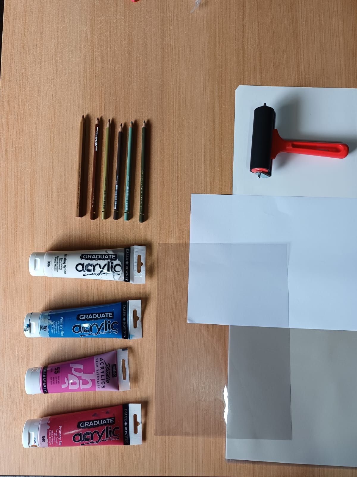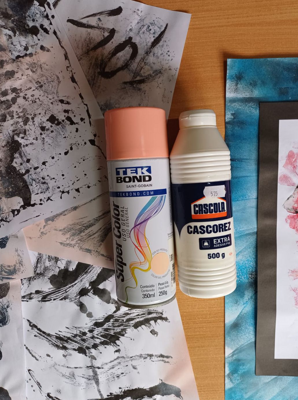 Het hele creatieve proces voor het project "Cartografia Íntima" verliep analoog. Ik begon met het hergebruiken van papier dat ik met waterverf en acrylverf had beschilderd en handmatig had bedrukt met schuim- en rubberrollers. De papiersoorten variëren in textuur en dikte: sulfietvellen, perkamentpapier, oude kranten en zelfs koffiefilters, die op zichzelf de vrouwelijke rol in huis vertegenwoordigen, de vrouw als verzorger en een fundamentele figuur in de huiselijke context, die verband houdt met het feit dat ik tien jaar lang formeel ben gestopt met werken om me aan mijn gezin te wijden. Ik merk ook op dat zowel de koffie als de krant mijn identiteit als journalist oproepen, onderdeel van mijn professionele loopbaan, maar die op zichzelf niet kunnen overbrengen wie ik ben. Ik heb ook kleurpotloden (Polychromos van Faber Castell en Caran D'Ache) en Uni Pin Fine-pennen gebruikt voor details, evenals lijm en spuitverf. Naast de eerder genoemde papieren heb ik calqueerpapier gebruikt om de planisfeer te schetsen. Ik gebruikte hiervoor een oude afbeelding die ik online had opgezocht. Zo wilde ik ideeën en inspiratie opdoen voor het maken van mijn eigen denkbeeldige kaart.