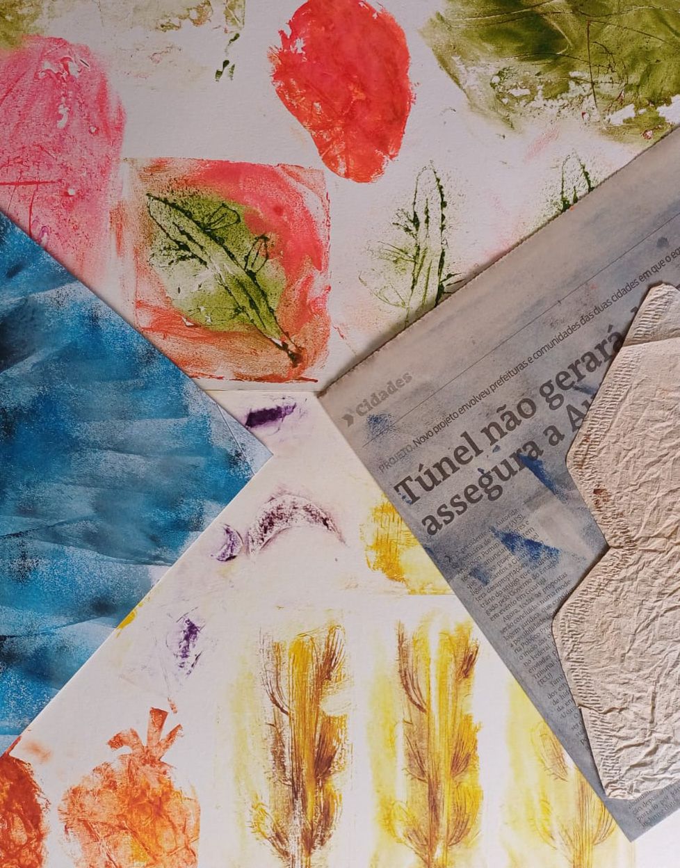 Sou jornalista formada em 1993, quando fui mãe pela primeira vez (tenho três filhos de 32, 19 e 16 anos de idade). Após duas décadas atuando como repórter, editora e assessora de imprensa, decidi pedir demissão do emprego formal para me dedicar à família porque na época estávamos passando por uma situação de problemas de saúde que exigiam minha presença em casa, para preparar nossas refeições e cuidar das tarefas do cotidiano, entre muitas outras funções. Comecei, então, a escrever contos, publiquei alguns em coletâneas, escrevi um romance, pratiquei fotografia e conheci o site Domestika, quando comecei a fazer vários cursos relacionados às minhas áreas de interesse, em especial a ilustração. Aos 51 anos entrei na menopausa de uma forma bem difícil, povoada de dúvidas e inseguranças. Atualmente estou com 54 anos, longe do mercado de trabalho e as questões hormonais ainda são um grande desafio, com consequências físicas e emocionais bastante exigentes. Para entender melhor esse processo comecei a pesquisar e ler sobre o assunto, mas a necessidade de transcender a teoria me fez conceber o projeto de colagem "Cartografia Íntima", a partir de técnicas muito simples de estampagem como a monotipia e outras experimentações como os materiais que tinha em casa, inclusive reciclados, como jornais velhos e filtros de café. Acho que a arte tem me ajudado muito, não só como forma de expressão e satisfação como também de, posso dizer, uma espécie de terapia. Gostaria de agradecer a todos que generosamente compartilharam seus saberes que me permitiram chegar até aqui. Obrigada! A quem quer tentar a arte como terapia, aconselho a começar por técnicas muito simples, sem exigir muito de si nem muita pretensão, tentando a maior abertura possível para que, por meio da expressão artística, consiga desenvolver novos olhares para si mesmo, para o próximo e para a vida, olhares que certamente vão ajudar a lidar com situações desafiadoras em qualquer idade (e gênero), resultando em libertação, criatividade e paz.