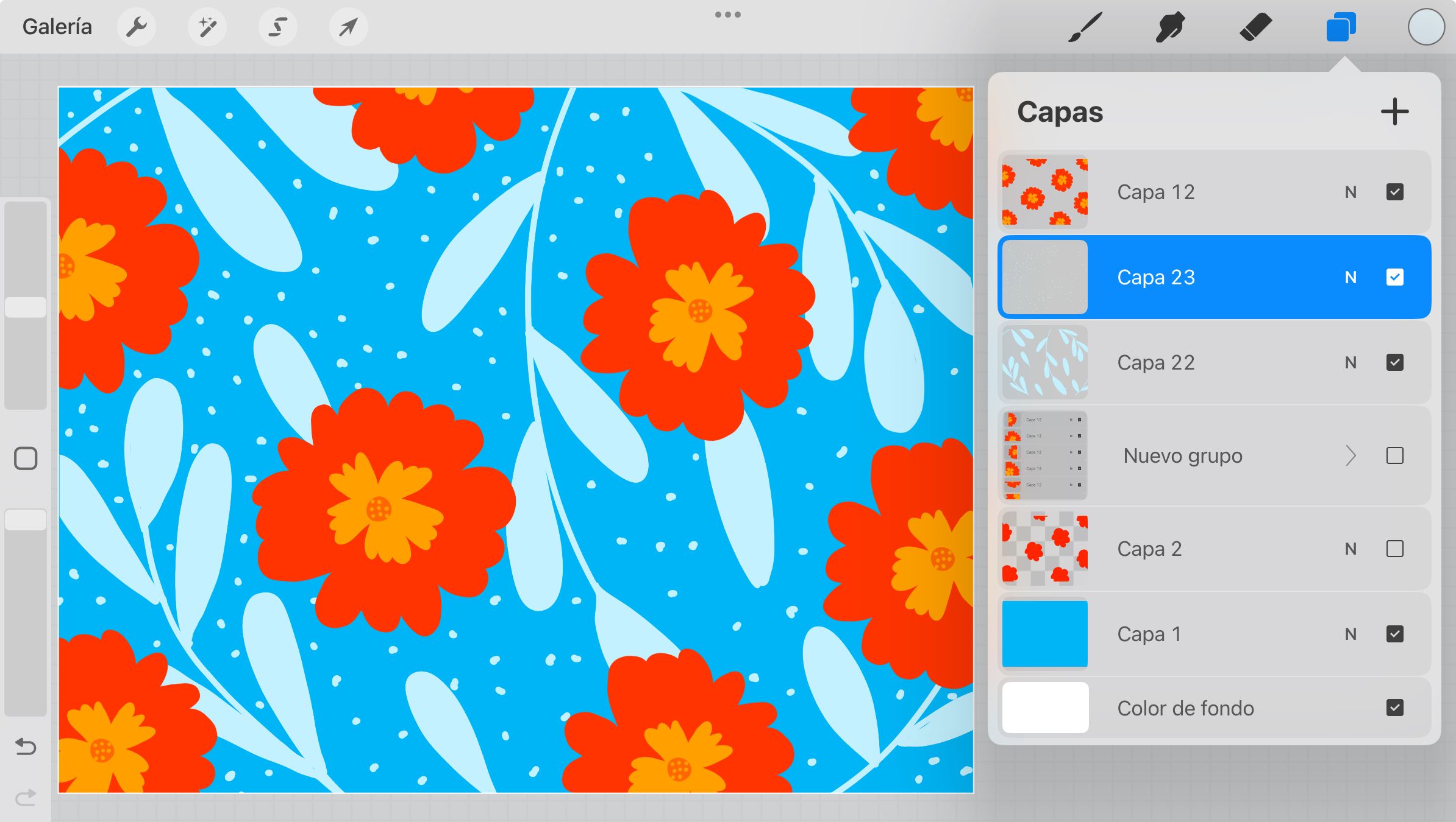 En esta ocasión he utilizado Procreate y mi iPad para trabajar los patrones, ya que aún no tengo los plumones posca.