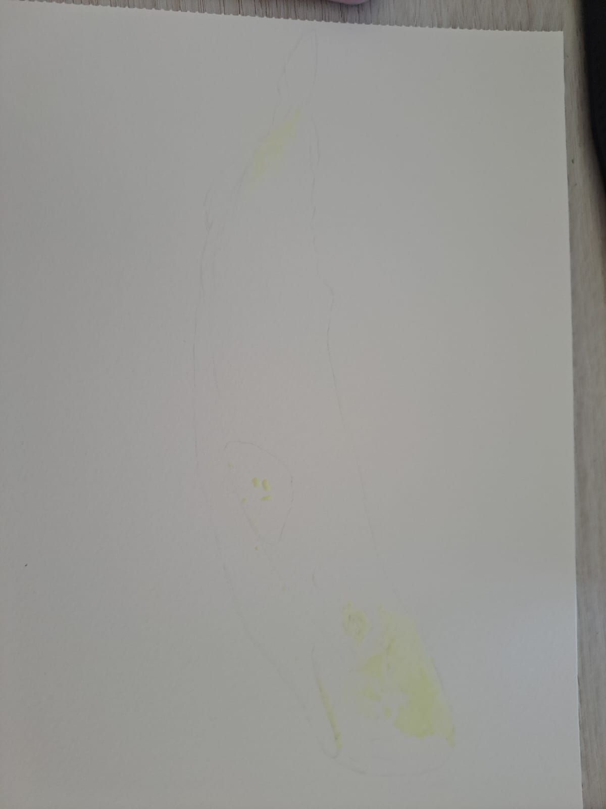 Pintei ela totalmente com a cor ocre para criar um fundo de pintura.