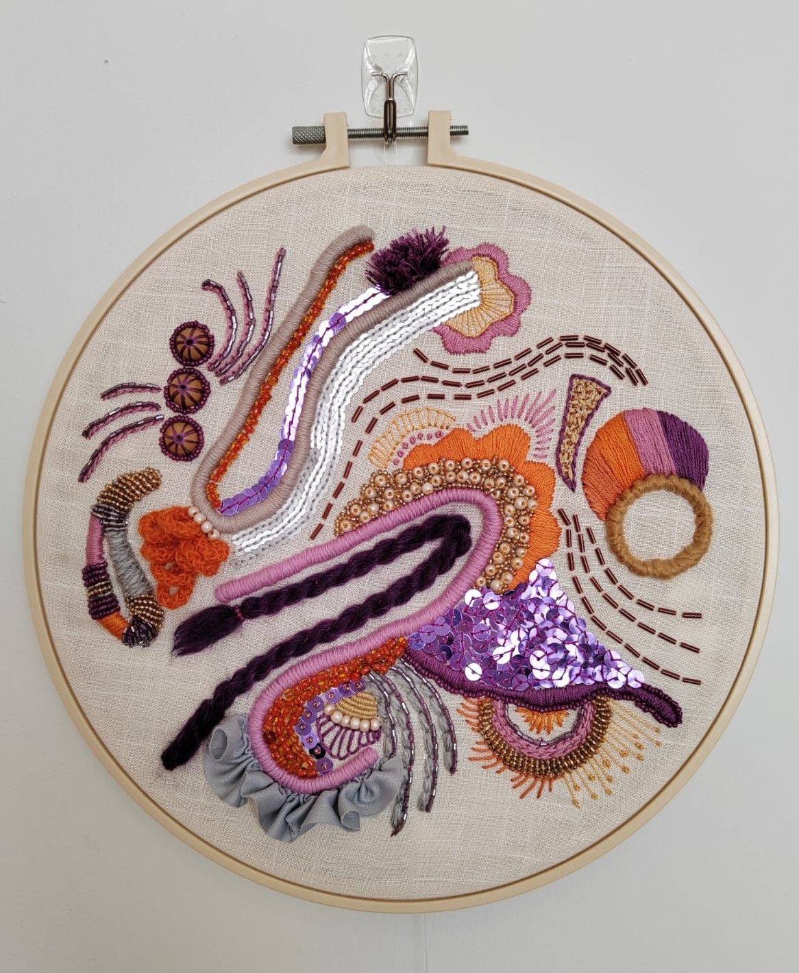 Bordado, hilos DMC, mostacillas, lentejuelas, lana, ect