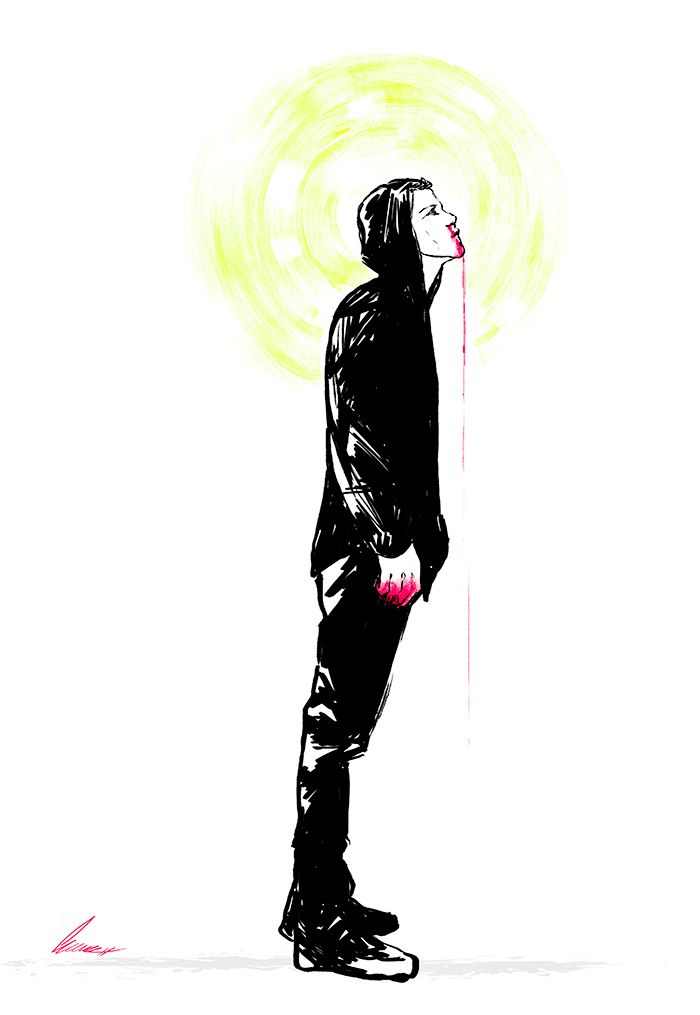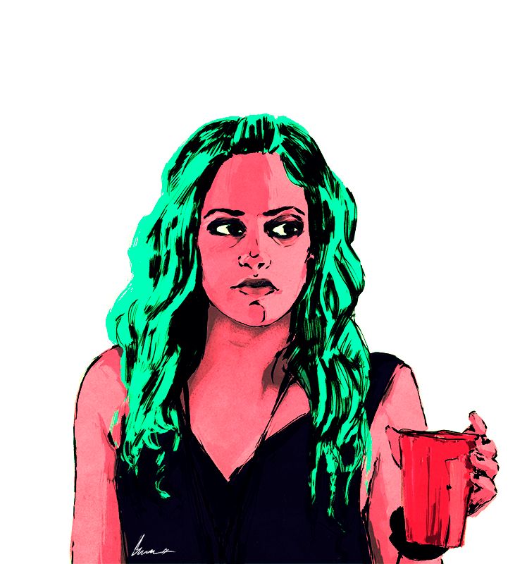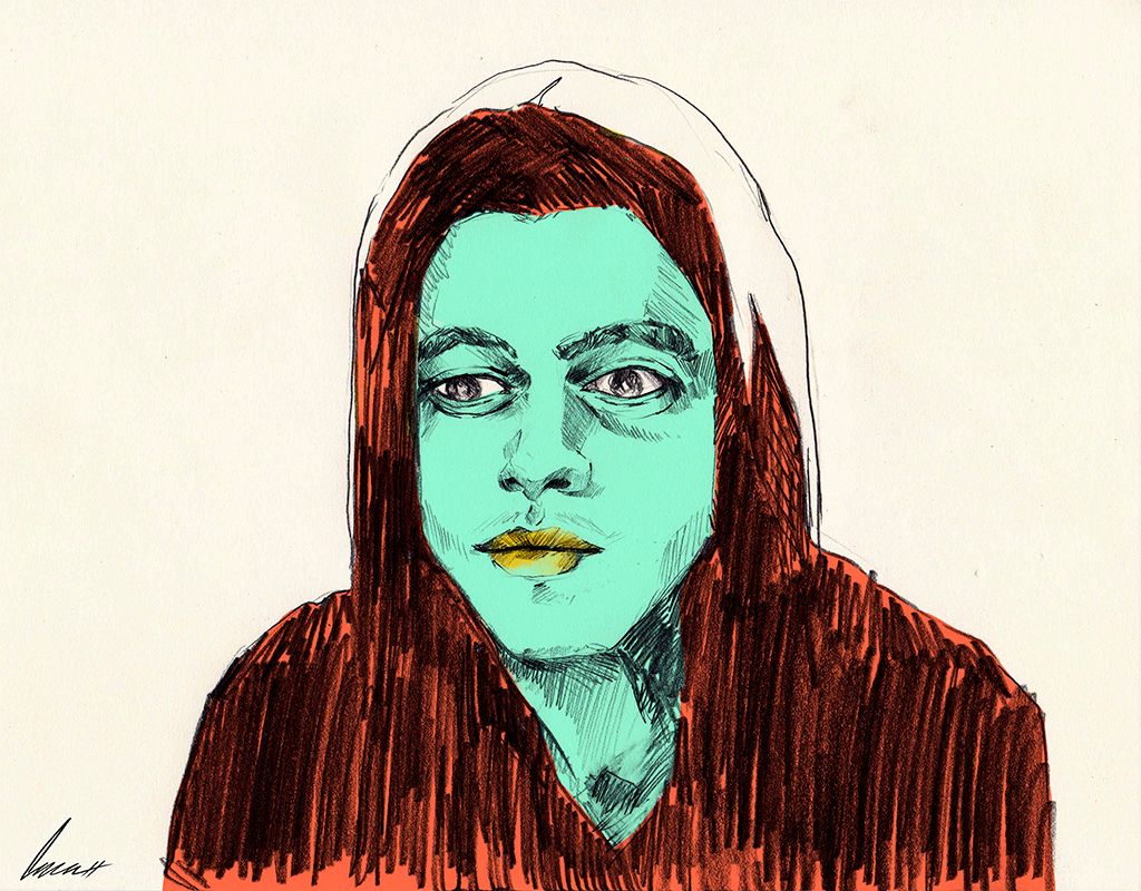 Algunos bocetos, retratos y escenas de Mr. Robot. Inspirada en el color "arcade" de F.Society
