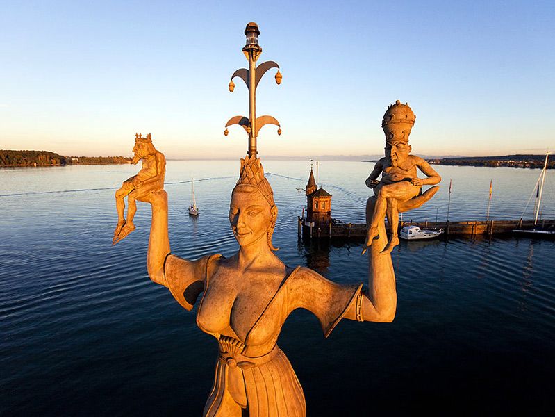 Más recientemente, en 1993, Peter Lenk se inspiró en el relato de Balzac y erigió esta estatua de Imperia en Constanza, mostrando a nuestro personaje dominando a los altos poderes de la iglesia y el estado.