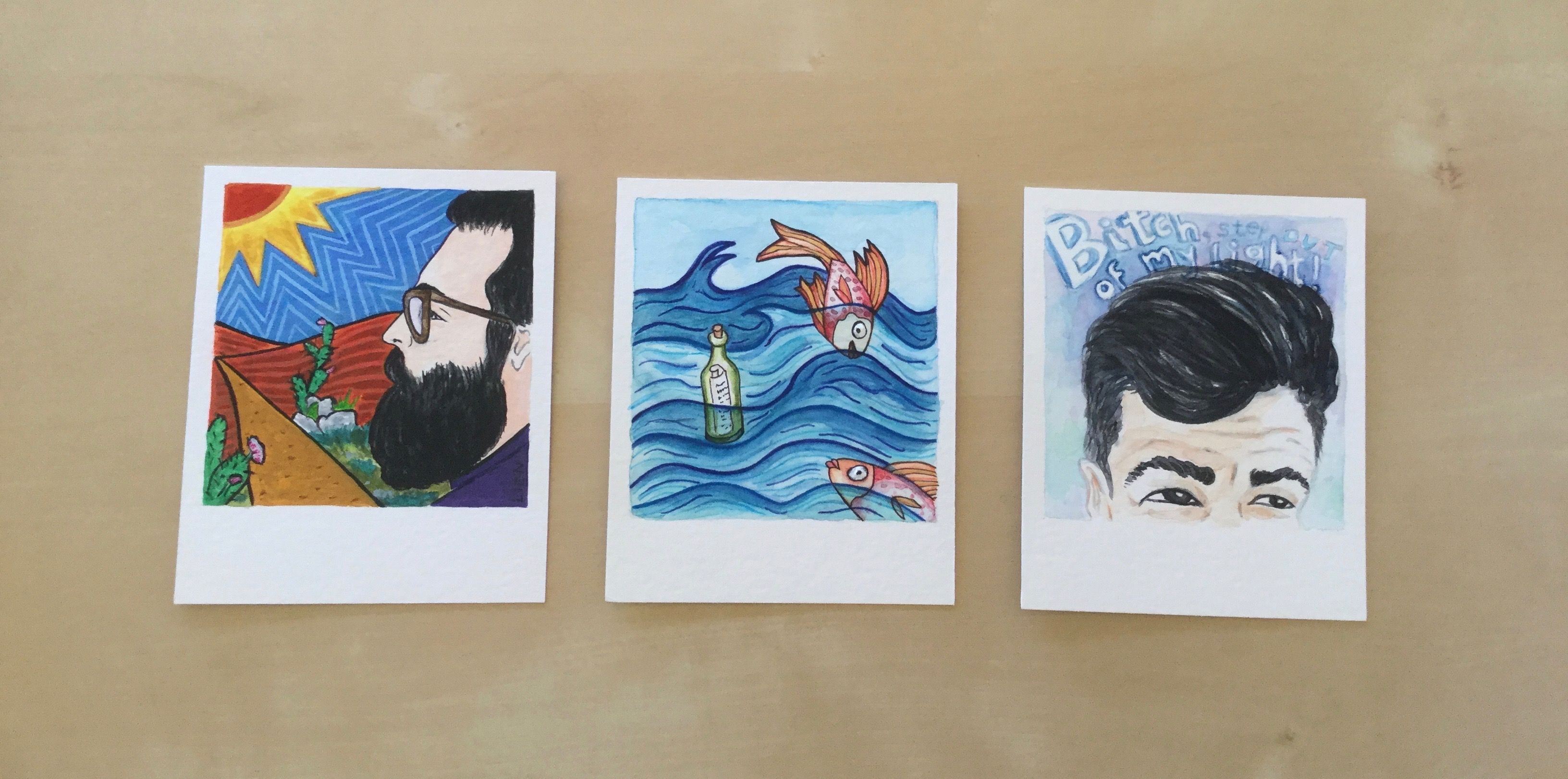 Avatar agrupa dos series que parten del pequeño formato para recrear imágenes que juegan con la foto de perfil y el formato polaroid llevado a la ilustración.