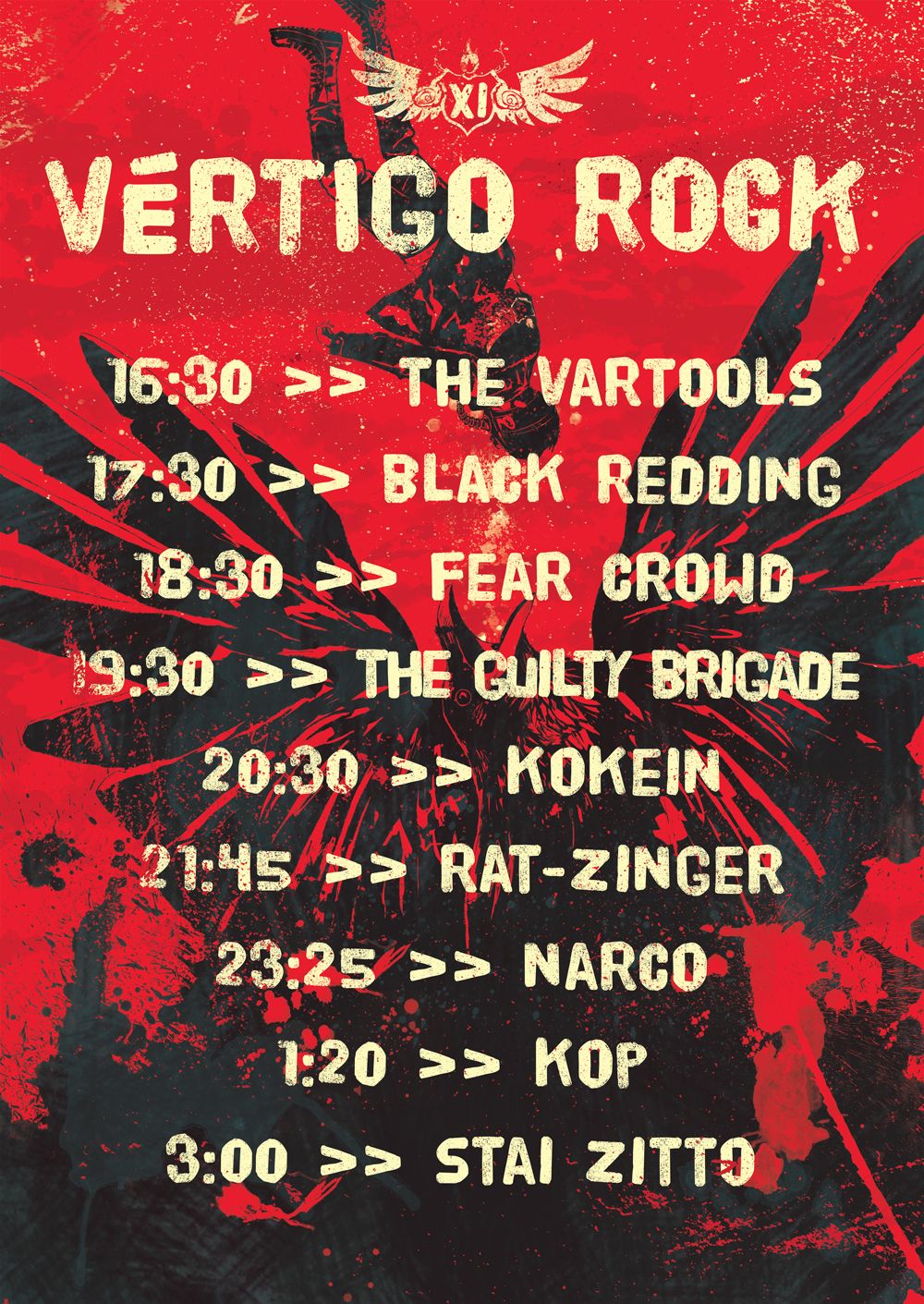 Cartel y conjunto de diseños para redes sociales y web ganadores del concurso llevado a cabo para la XI edición del Vértigo Rock Festival, cartel del 2017 encabezado por Narco.