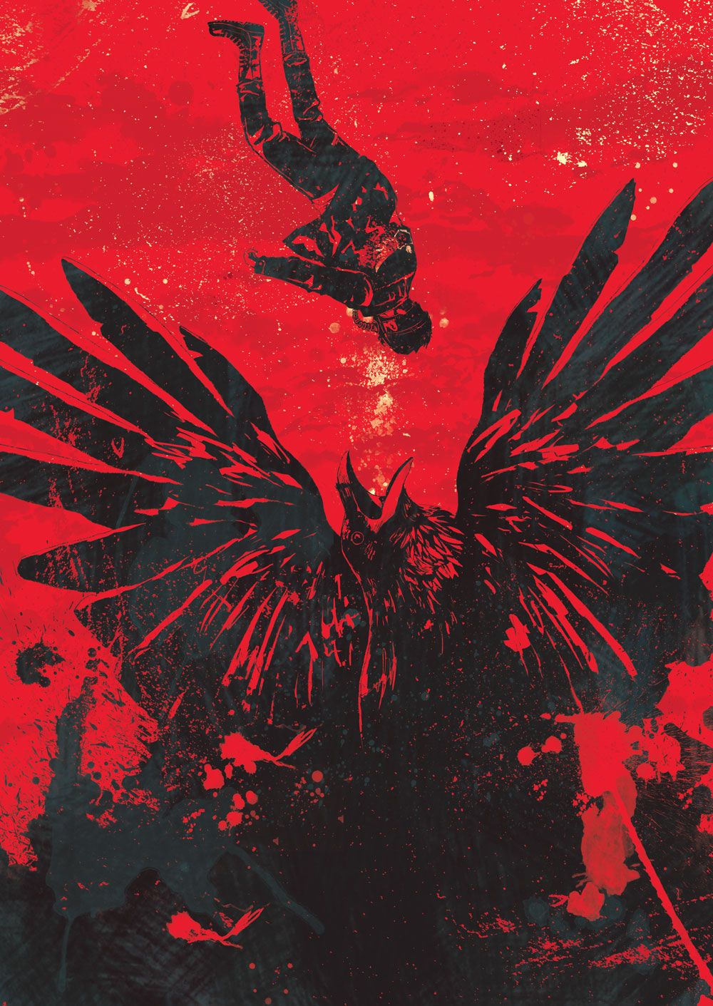 El diseño está inspirado en la estética punk y se usa el cuervo con las alas abiertas como elemento conductor, ya que en el logo del festival se pueden ver unas alas. Opté por usar un cuervo puesto que es un pájaro oscuro y enigmático que me parece acertado usar con este tipo de música.