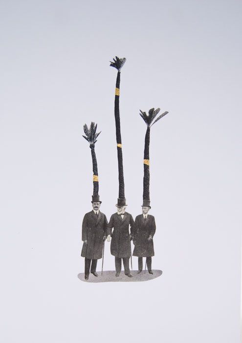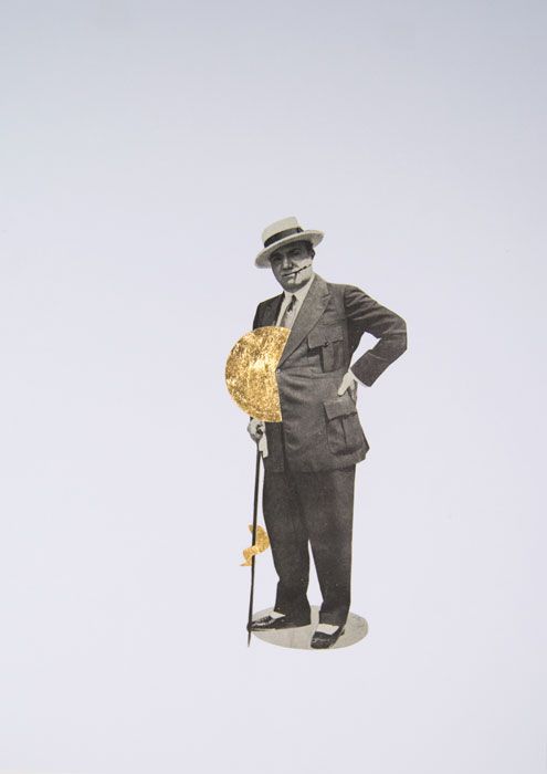 Serie de collages analógicos. Usando la revista Mundo gráfico, pan de oro y papel vegetal entre otros materiales.