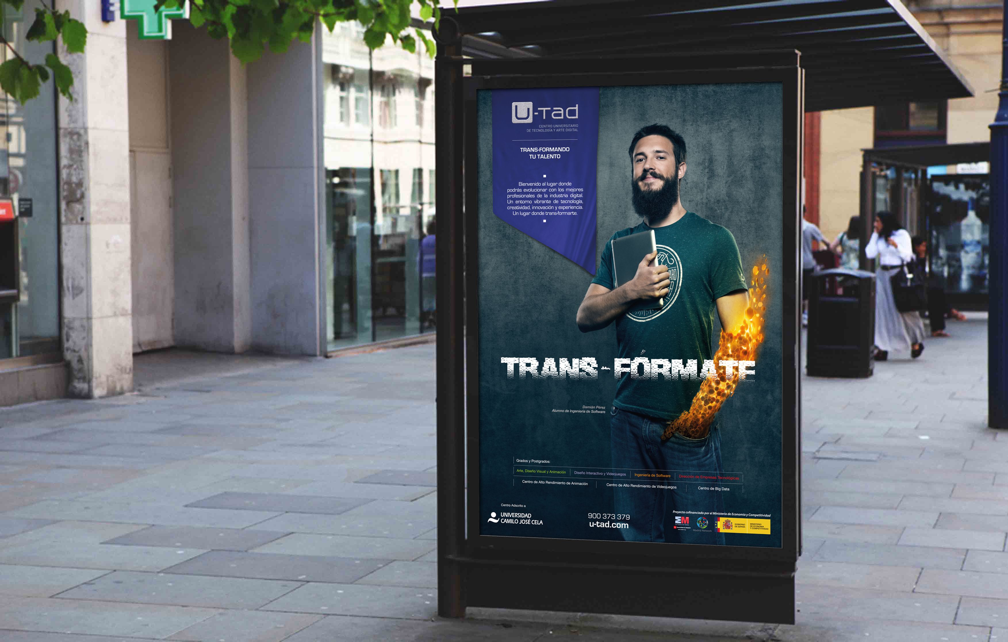 Desde Ilion lideré la organización de los equipos creativos, el trato con el cliente (la universidad U-Tad) y la agencia Peanuts & Monkeys para realizar las imágenes de esta campaña integral que incluía audiovisual online, gráficas en exterior y piezas display.