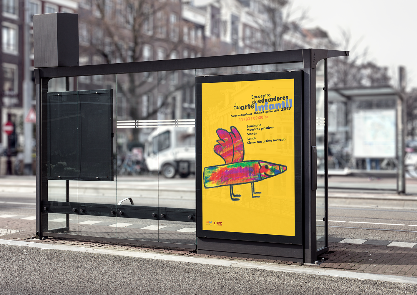 Proyecto académico para la Escuela Superior de Comunicación Social y Diseño Gráfico CETP-UTU, creado para resolver una identidad de marca para un Encuentro de Educadores de Arte Infantil.