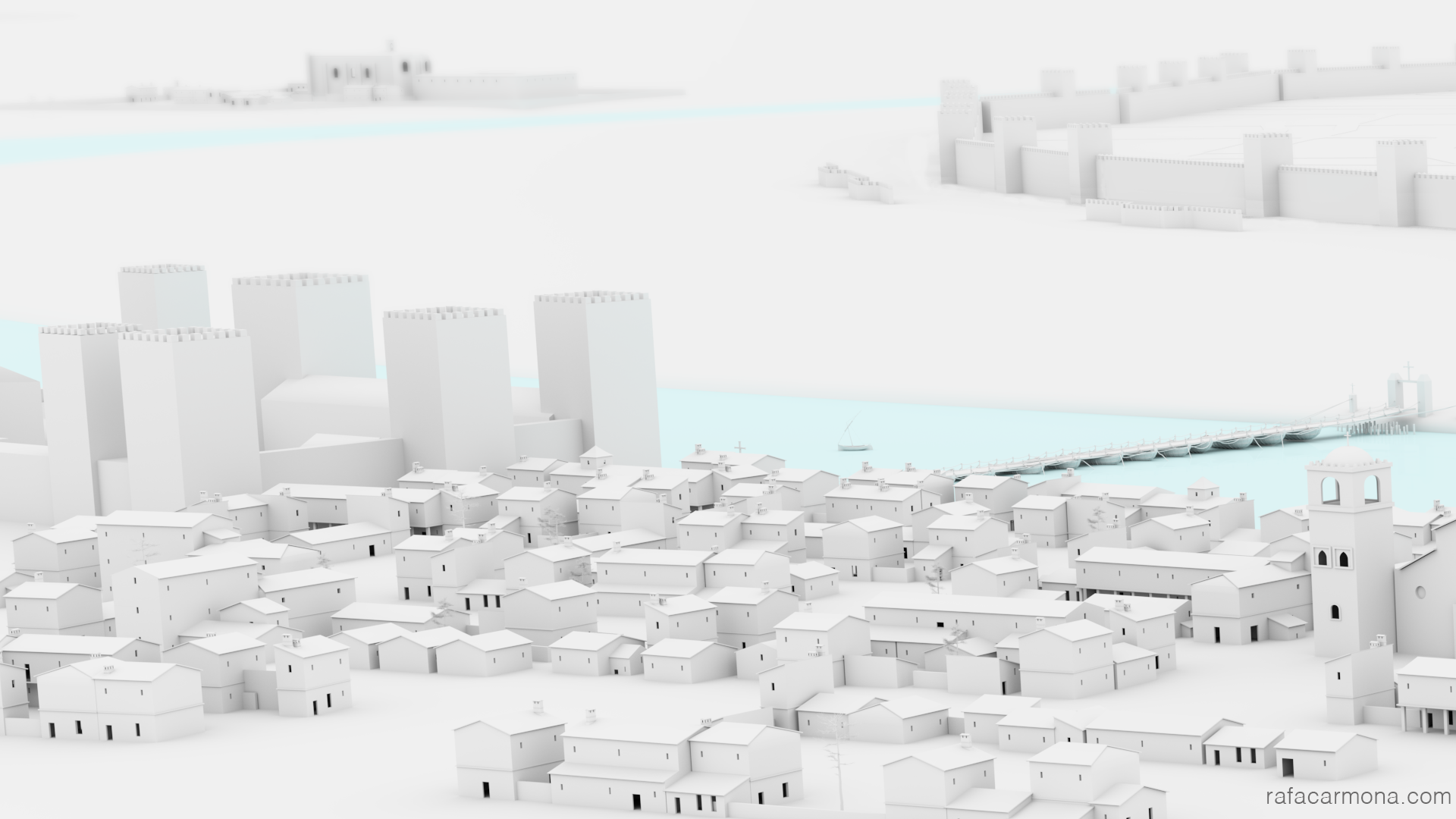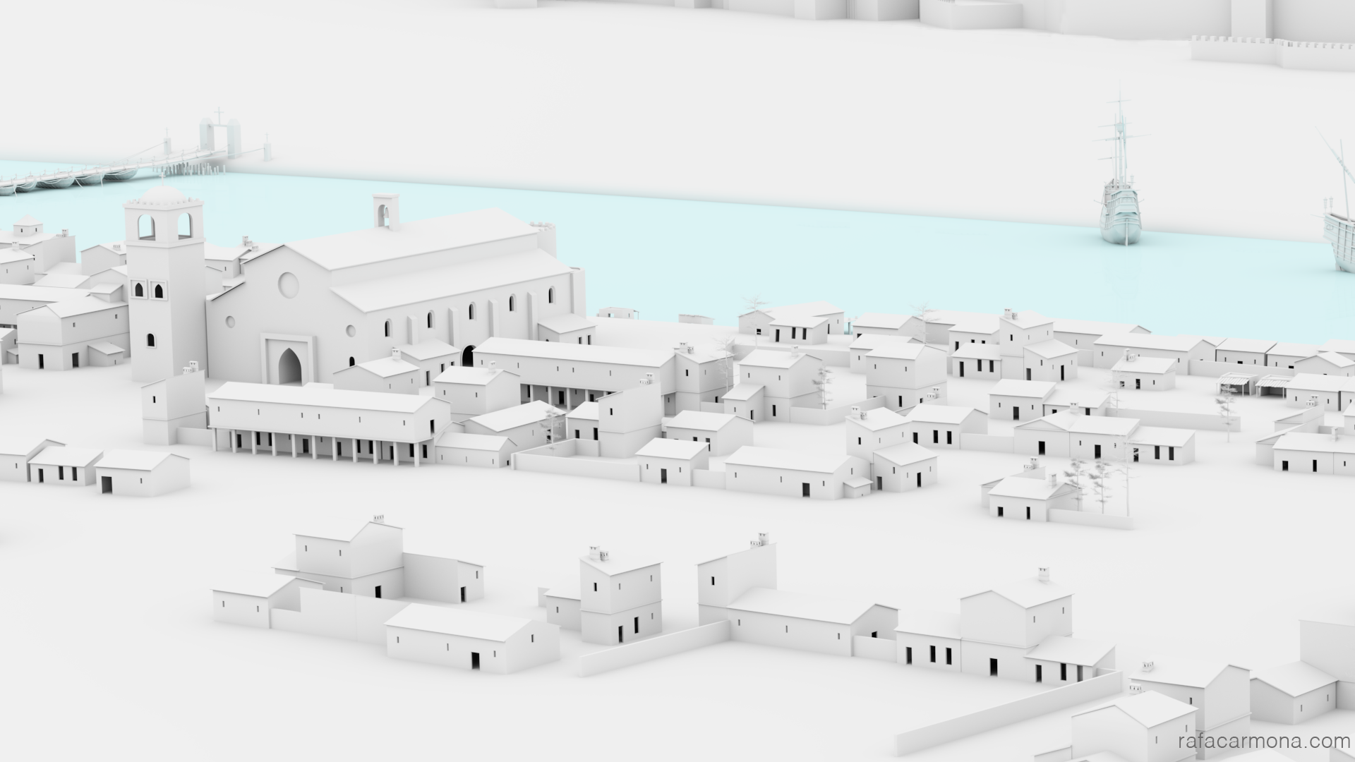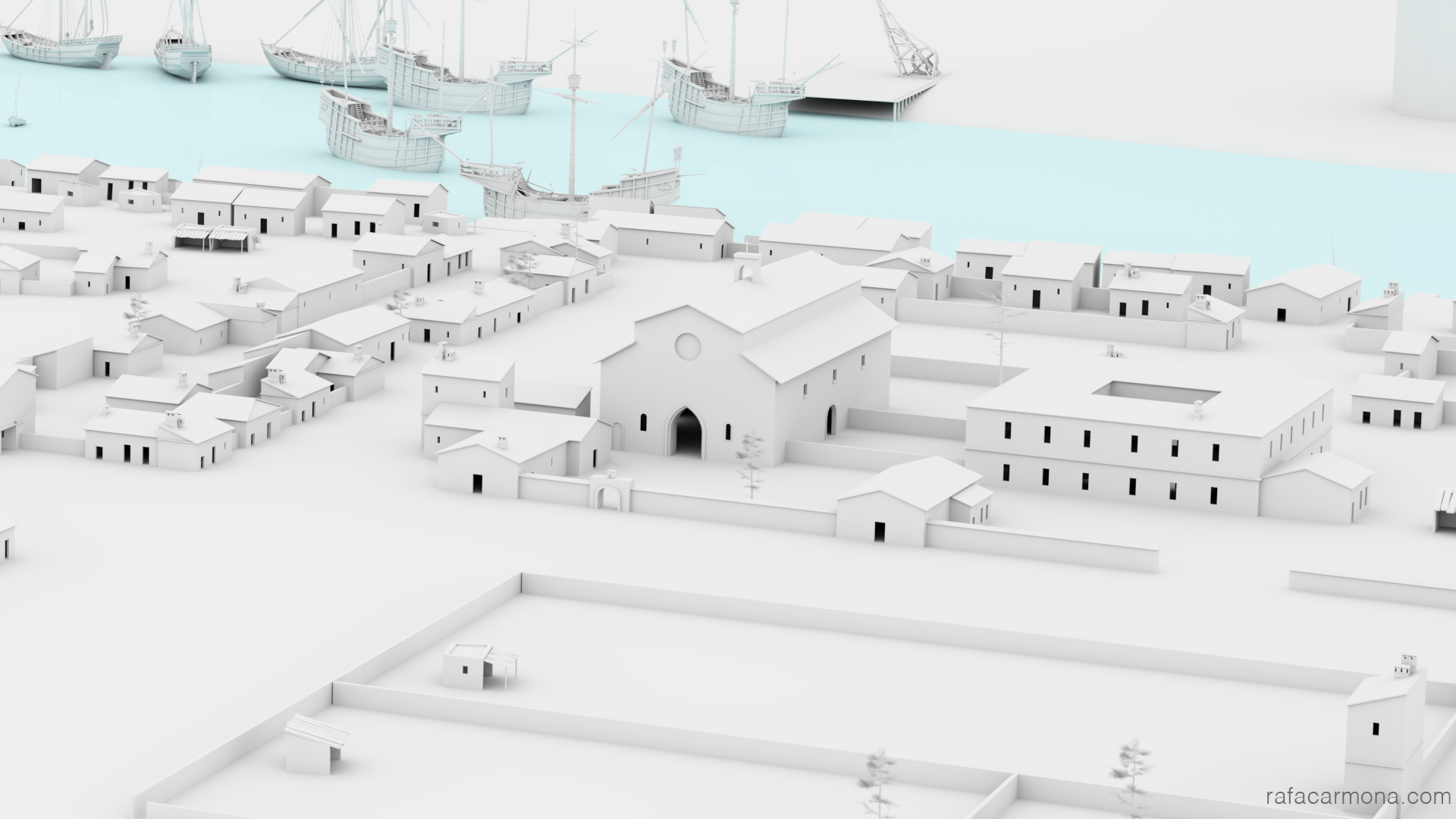 Principalmente la construcción del primer termino(Barrio de Triana) de la panoramica de la llegada a Sevilla ,recreada a partir del trabajo con historiadores y documentación de la época .