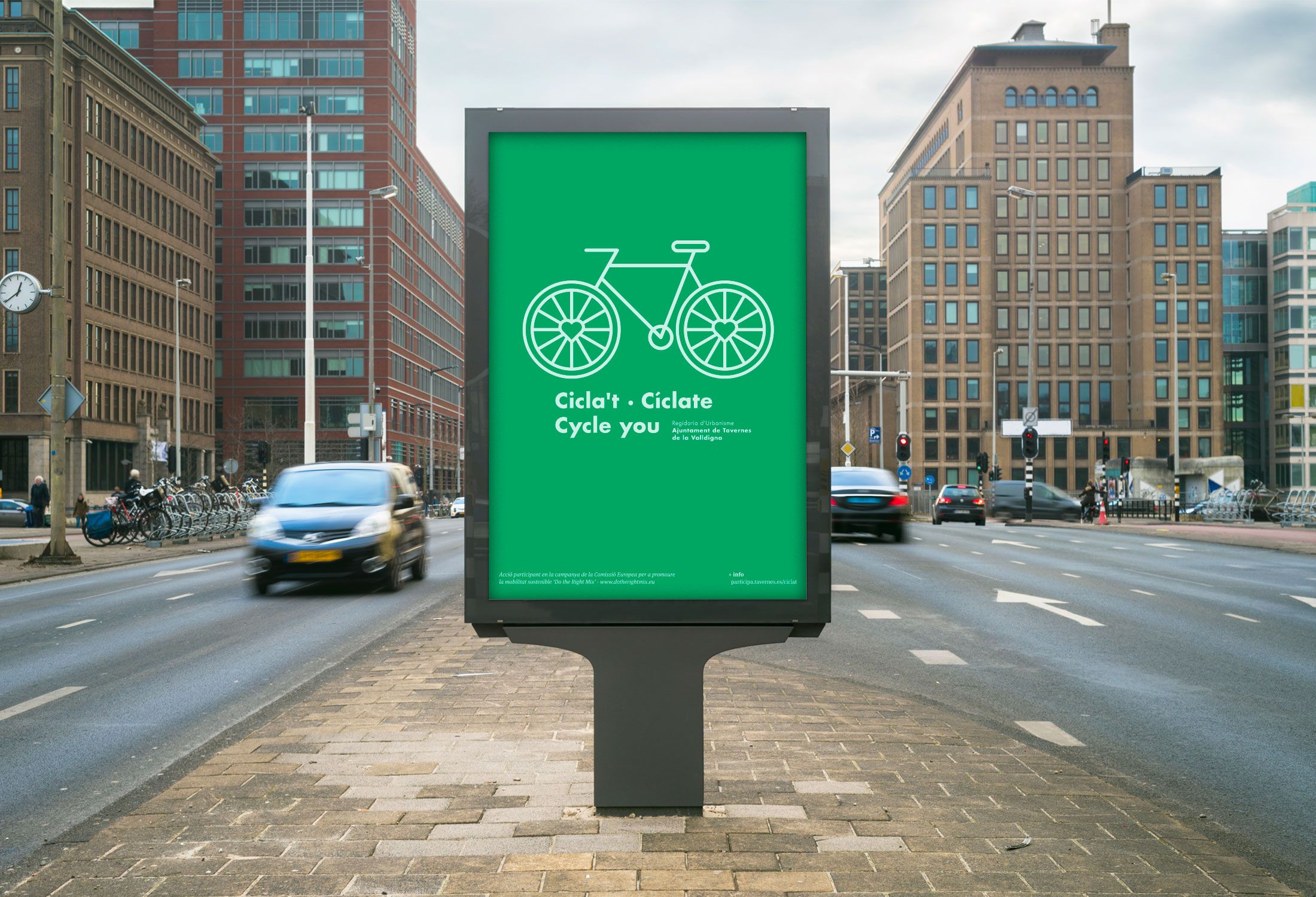 Campaña de promoción de la bicicleta que tenia por objetivo el contribuir a modificar la percepción de esta como elemento exclusivo de ocio y deporte, y así extender su uso a los desplazamientos cotidianos, buscando la convivencia entre bicicletas, coches y peatones en calles y caminos del municipio. La imagen diseñada tiene como protagonista a una bicicleta, en la cual se han sustituido los bujes por corazones con el objetivo de humanizarla.