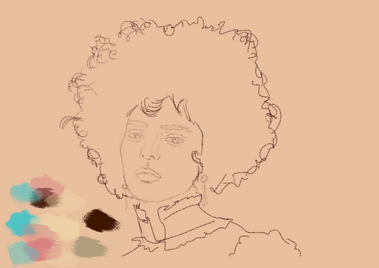 Boceto y muestra de la paleta de colores con la que empece.. A medida que iba avanzando he añadido algunos tonos.