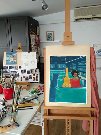 Este cartel es un homenaje a la activista afroamericana Rosa Parks y reivindica el papel de la mujer en algunos campos laborales silenciados como el de la mujer instrumentista. Por otro lado, su mirada desafiante muestra que a pesar de ser de noche y estar sola, no tiene miedo.