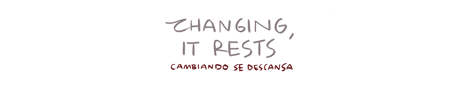 Basada en el aforismo de Heráclito “Cambiando se descansa” esta pieza está conformada por un dibujo físico y una animación digital. La cosmología de Heráclito, en general, habla sobre cómo todo en la vida y la naturaleza está en constante cambio, así que prácticamente no seríamos siempre las mismas personas o como él planteaba “Ningún hombre puede cruzar el mismo río dos veces, porque ni el hombre ni el agua serán los mismos.” La animación, al mismo tiempo, es una disciplina donde la transformación es clave, sin embargo, es por medio de los descansos que podemos apreciar mejor estos cambios.