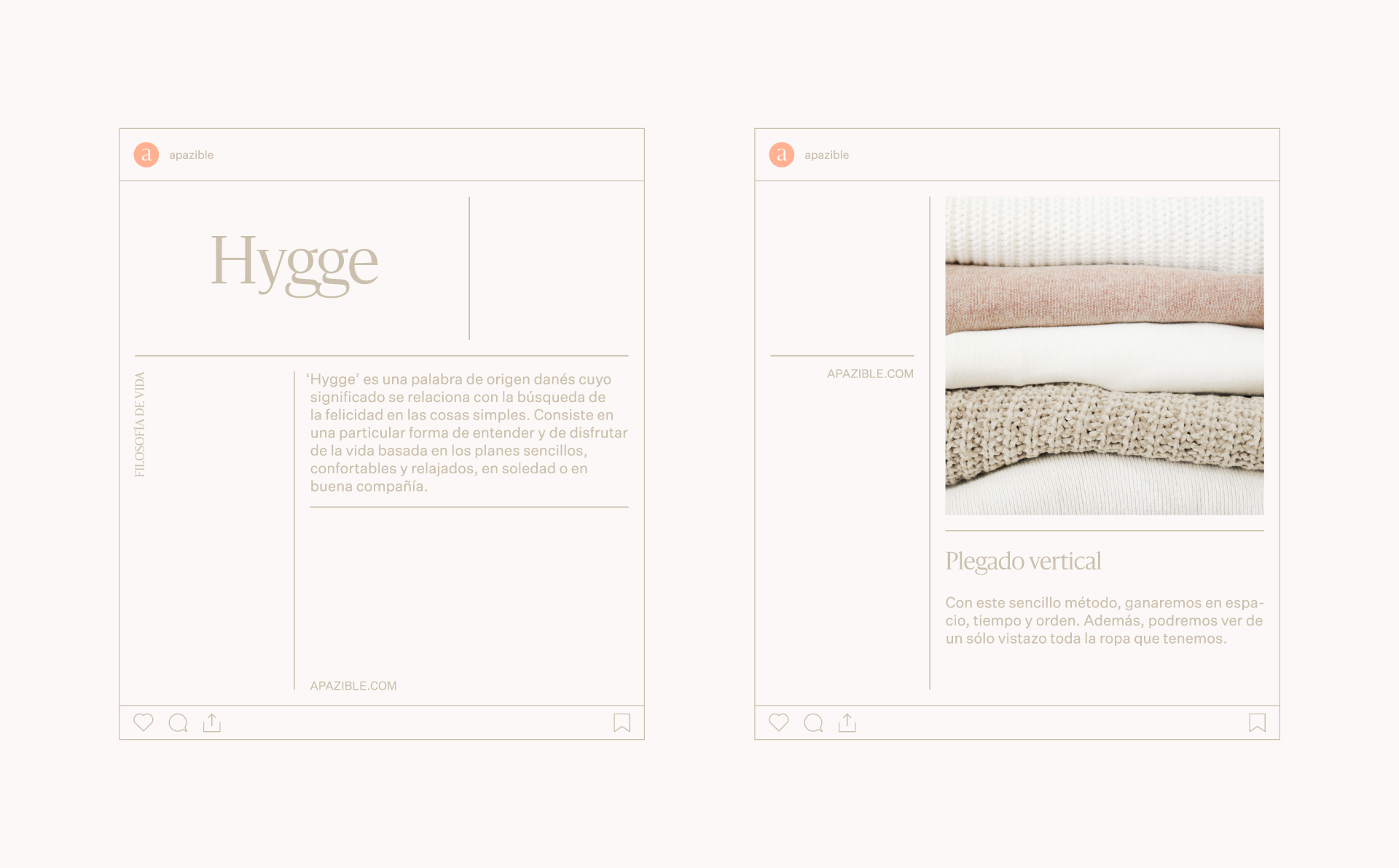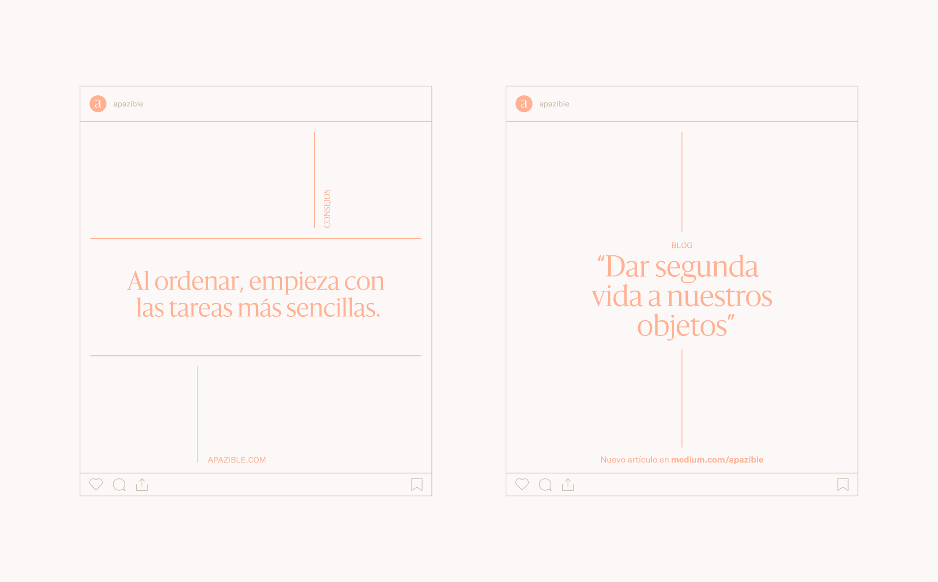 En este contexto, encontramos la oportunidad de diferenciarnos y alejarnos de la competencia a través de un enfoque mucho más aspiracional que excede el acto en sí de organizar. Con ‘apazible’ hablamos del beneficio de la marca y de la sensación que dibuja en nuestro día a día un espacio ordenado.