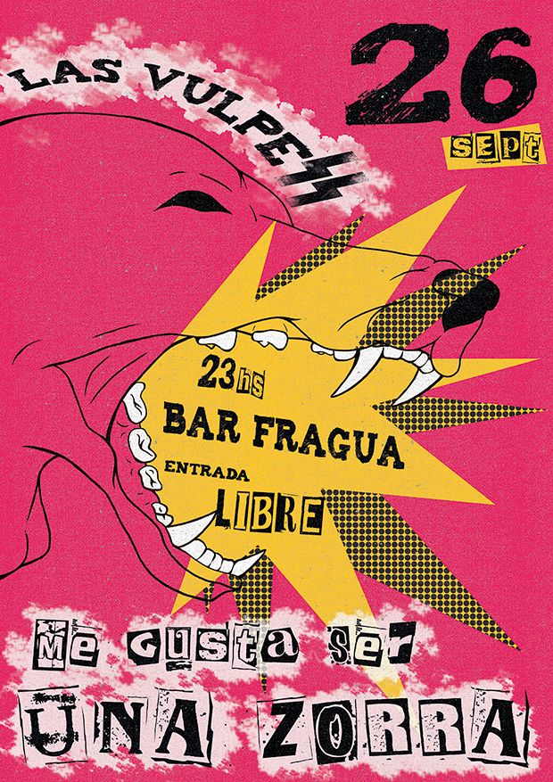 Trabajo de carteleria realizado en Photoshop, con estilo pop art punk para el grupo Las Vulpess de los años 80