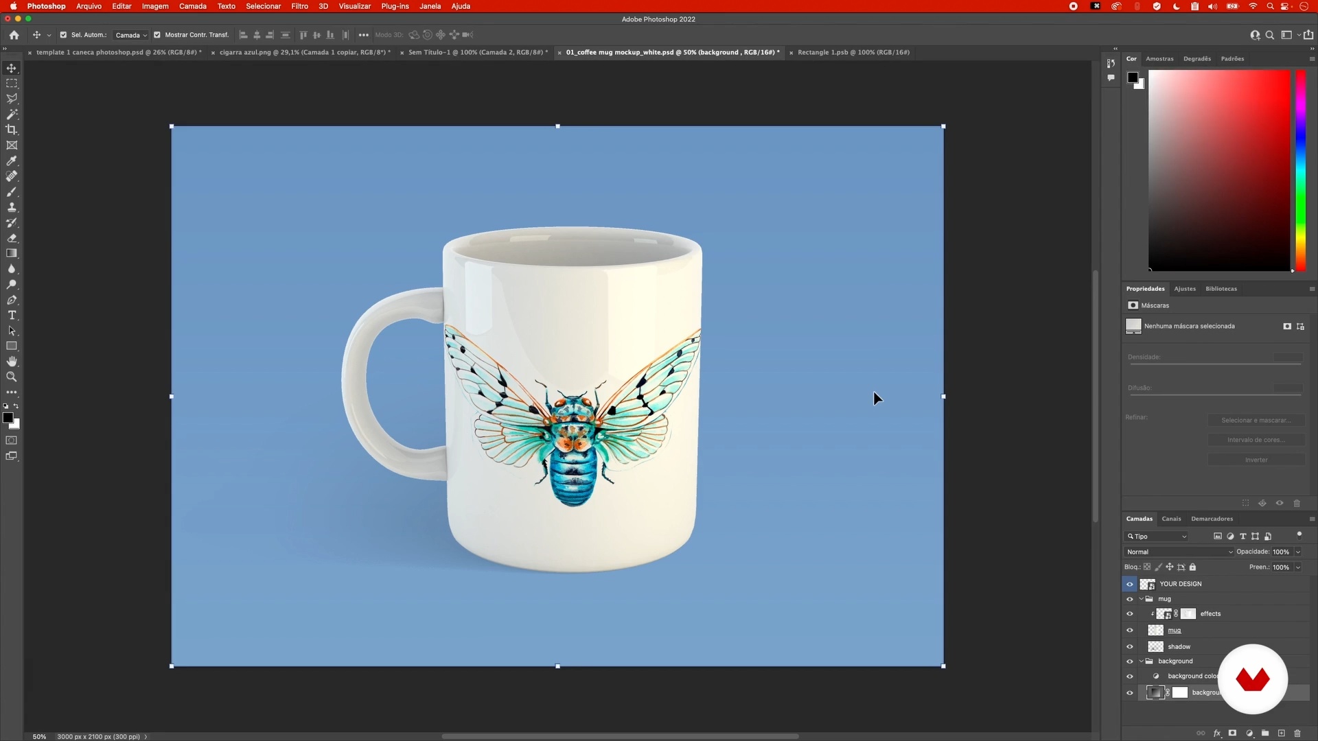 “składanie pliku Na tych zajęciach pokażę jak zamontować plik do wysłania do drukarni lub do klienta. Daj spokój? Teraz, gdy mamy naszą pięknie zredagowaną ilustrację, przezroczyste tło i zapisane na naszym komputerze, Pokażę Ci, jak ustawiliśmy szablon dla naszego produktu. Przygotowałem tutaj szablon na kubek. To jest w zasadzie kubek, jakbym go rozciągnął. Ponieważ jest to walec, zamienia się w prostokąt. Tu jest środek kubka, tu lewa strona, a tu prawa strona. Przygotowując grafikę do druku, poproś dostawcę o przesłanie szablonu produktu, który zamierzasz wydrukować lub zapytaj o wymagan...”