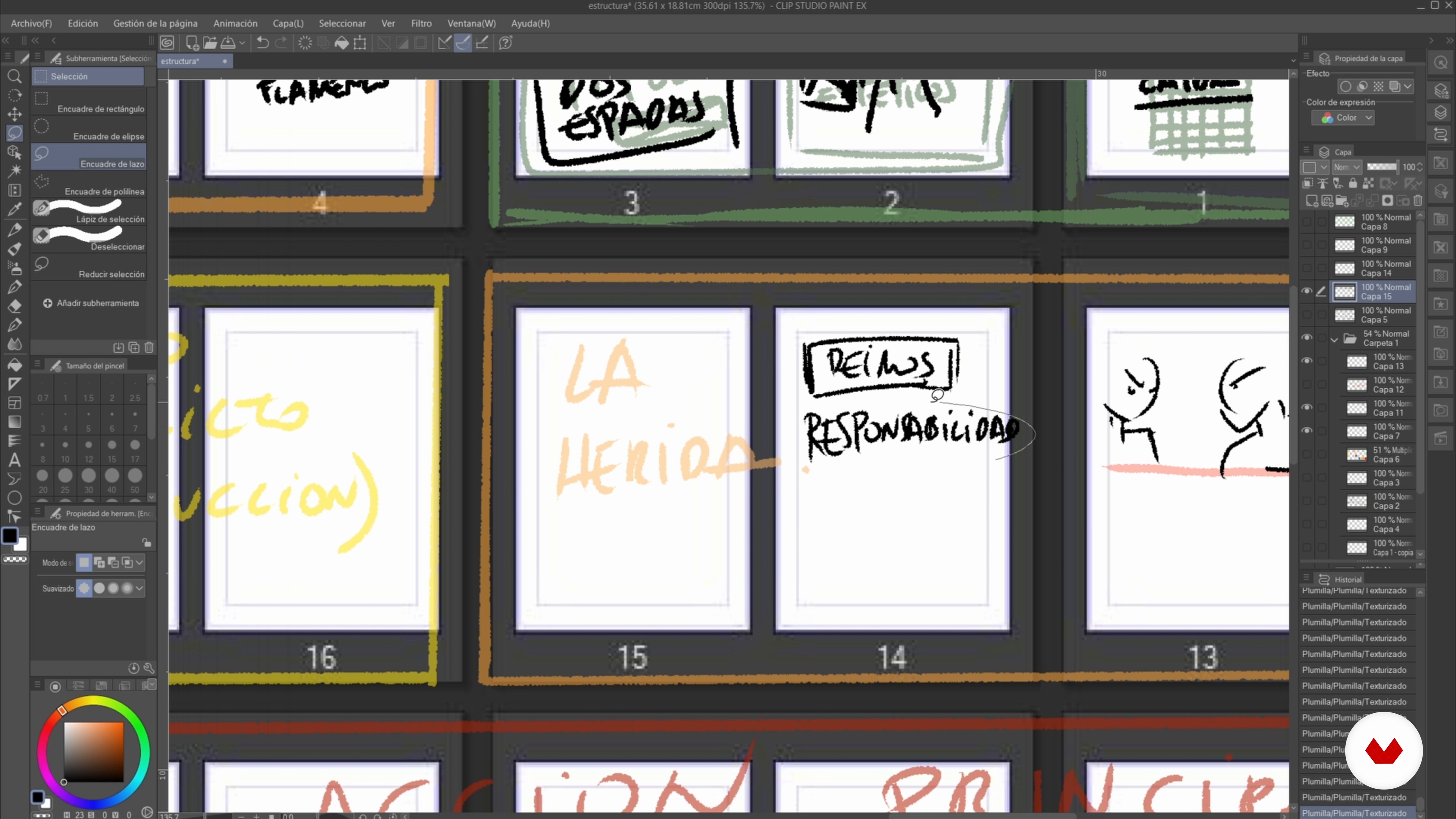 “struktura historii Gdy już stanie się jasne, że nadszedł czas na deklarację woli, wszystko to są punkty estetyczne. Wybierz najfajniejszą rzecz, jaką możesz narysować i upuść ją tutaj. Na poziomie strukturalnym po prostu staraj się, aby zawsze było bardzo zabawne A rzeczy nie przestają się dziać. Łatwy sposób na zrozumienie czy zrobili zwiastun do twojej mangi, wszystko, co się w nim pojawia, to te strony. To jest to, co wszyscy chcemy zobaczyć. Ostatnia część i skończę z turrą, jest reakcja. Jak już ci wielokrotnie wyjaśniałem, i nie znudzi mi się robienie tego bo to naprawdę jest klucz do...”